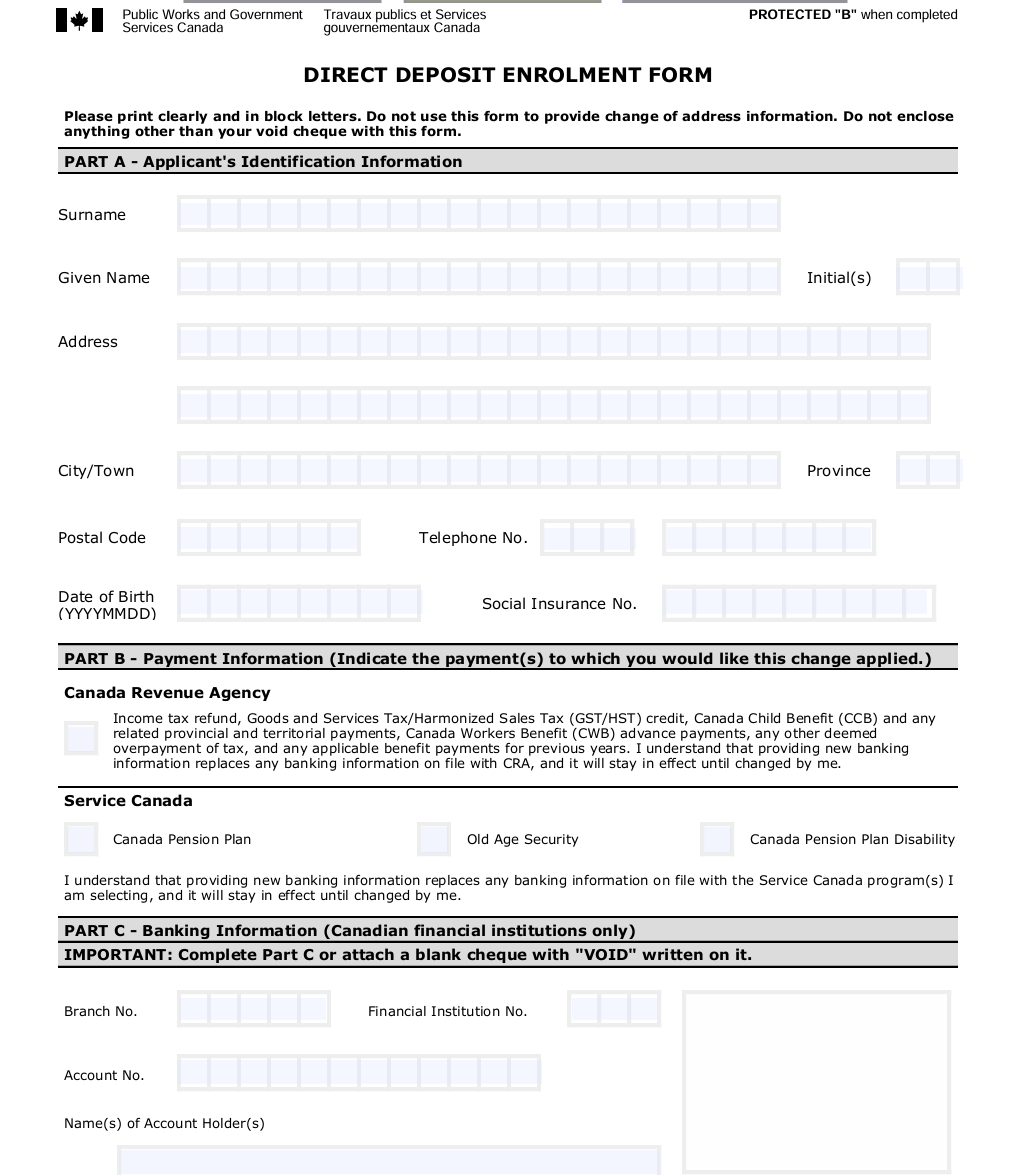 Direct Deposit Enrolment Form (PWGSC-TPSGC 8001-552E)