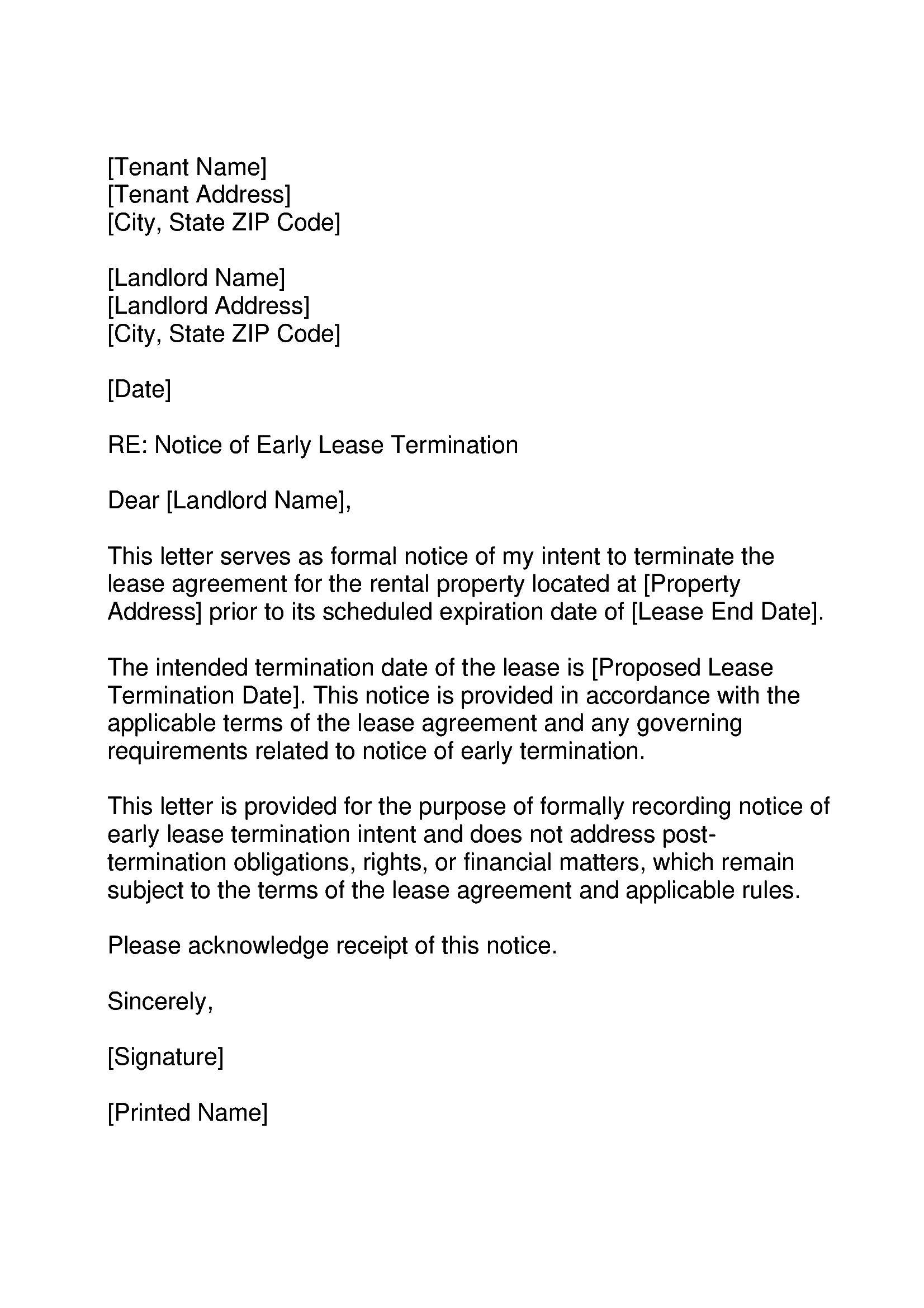 Early Lease Termination Letter