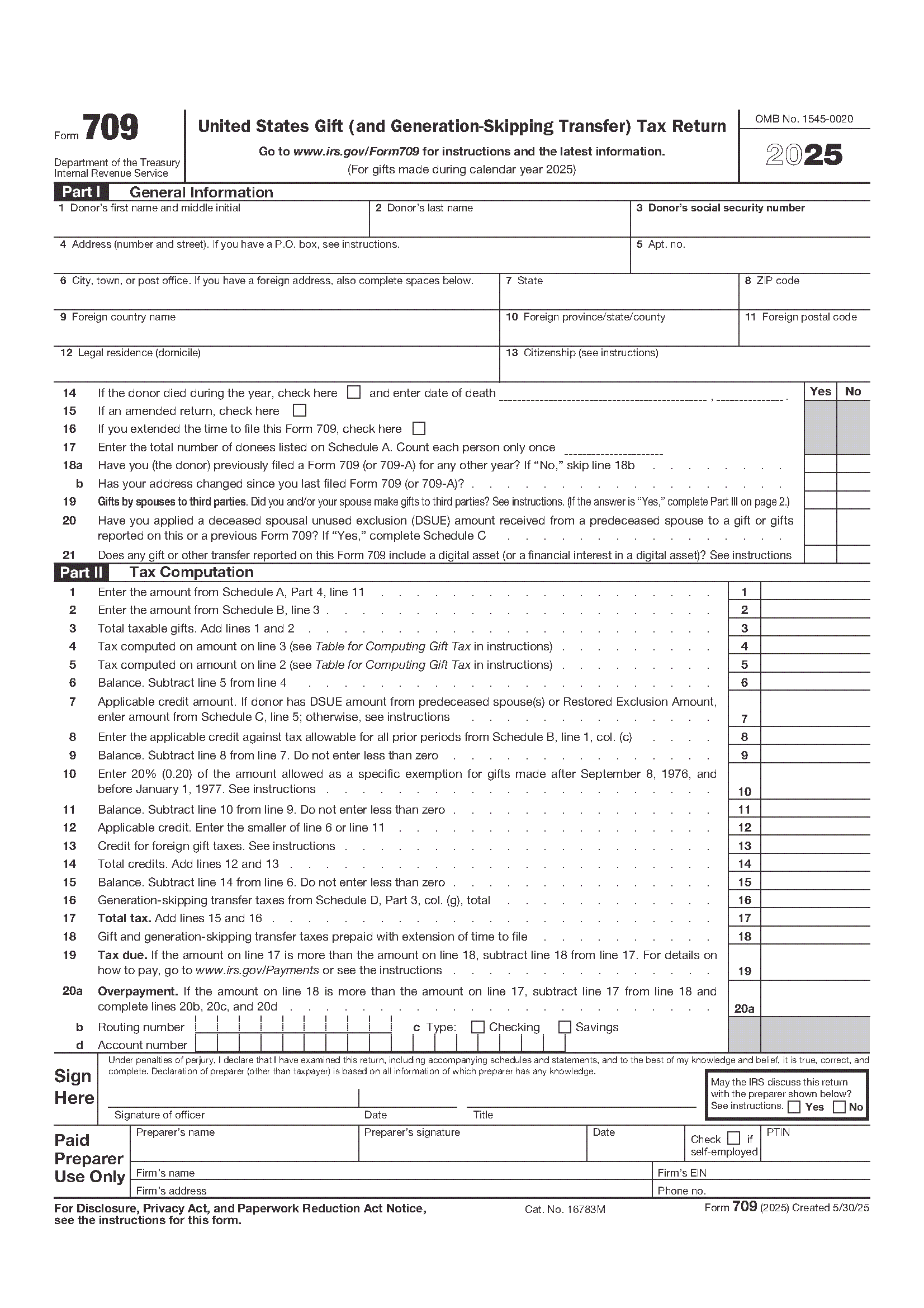 IRS Form 709. United States Gift (and Generation-Skipping Transfer) Tax Return
