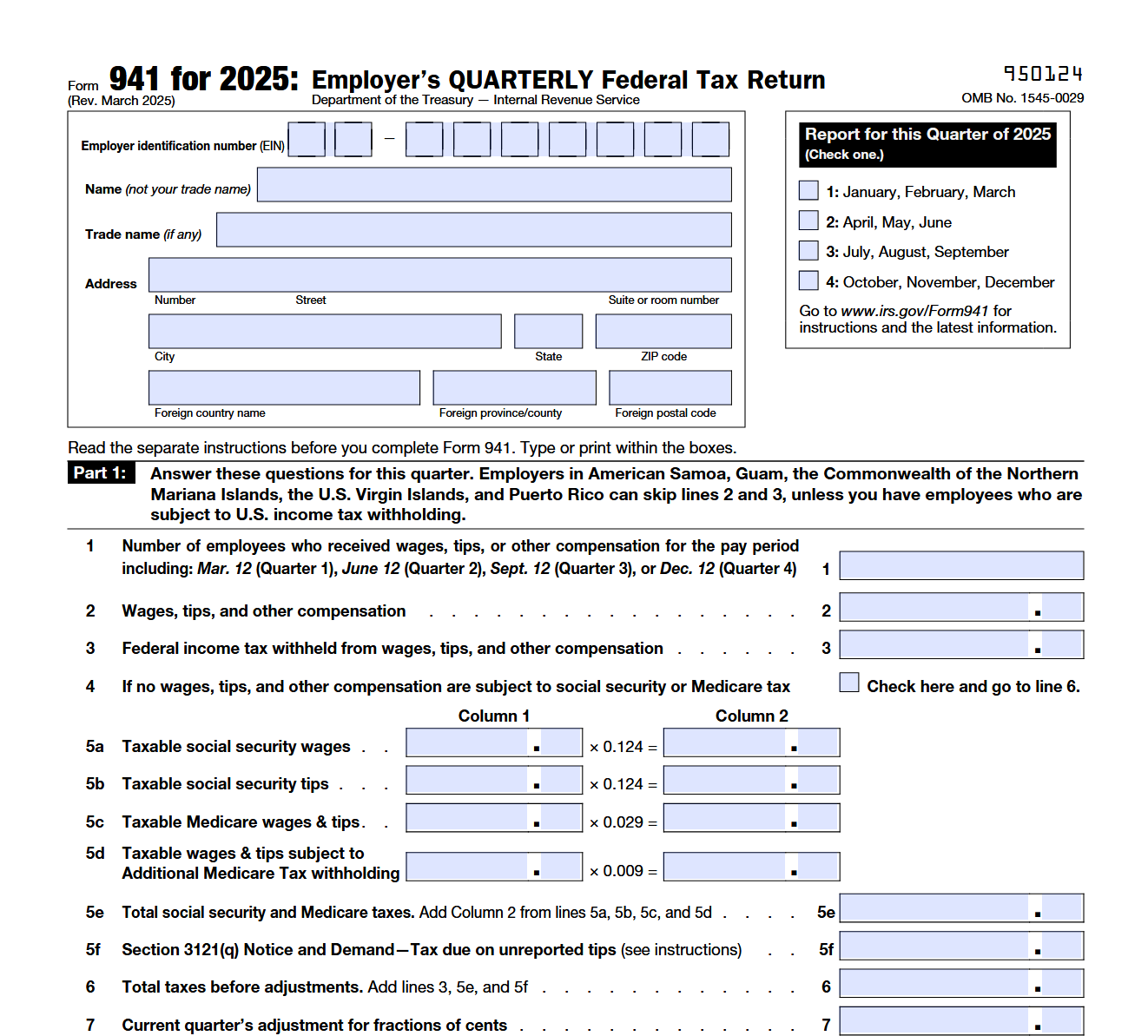 Form 941 consists of several parts, including: