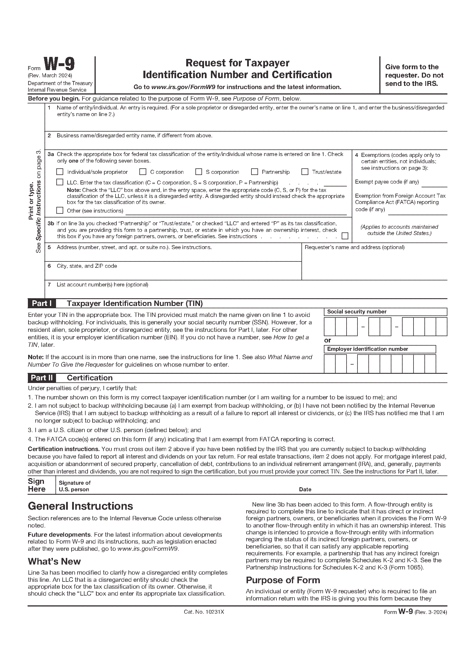 IRS Form W-9. Request for Taxpayer Identification Number and Certification