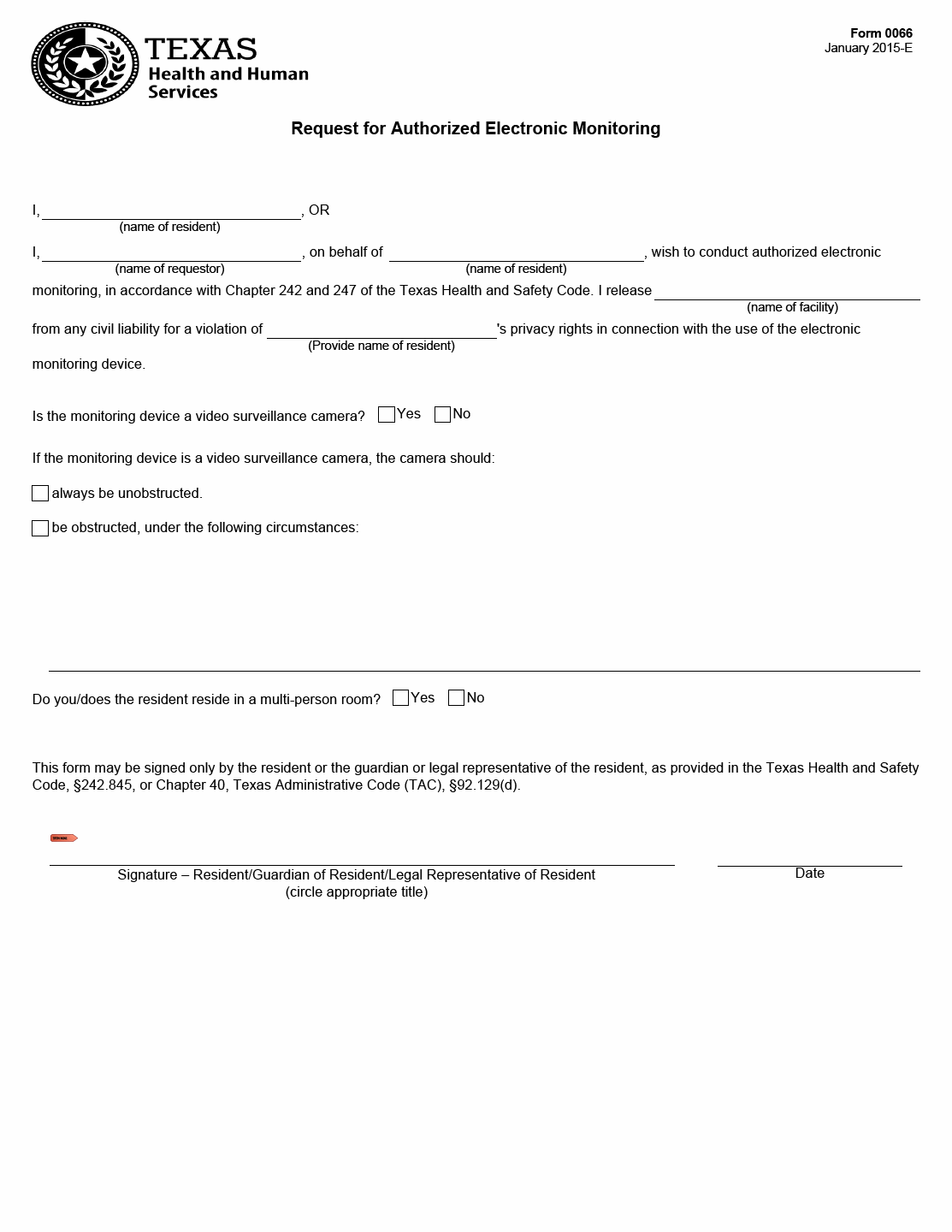 TX HHS Form 0066. Request for Authorized Electronic Monitoring