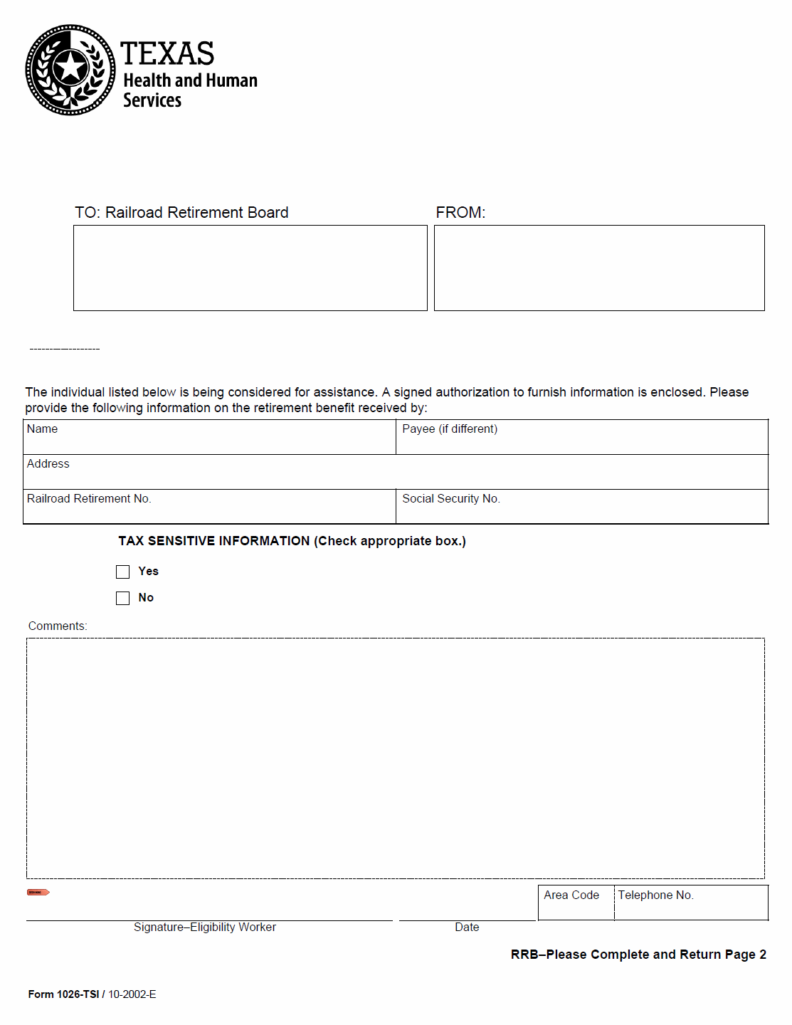 TX HHS Form 1026-TSI. Verification of Railroad Retirement Benefits - TSI