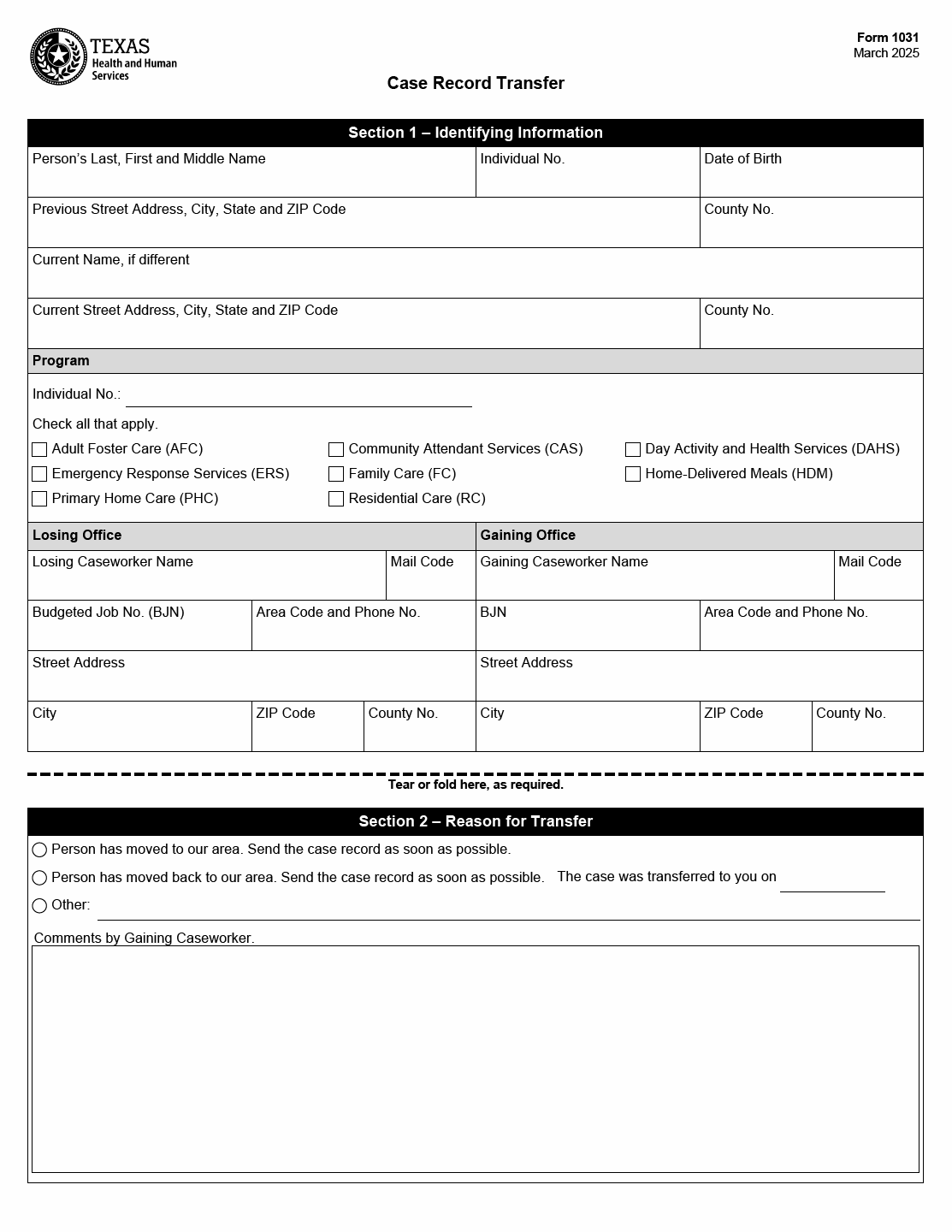 TX HHS Form 1031. Case Record Transfer