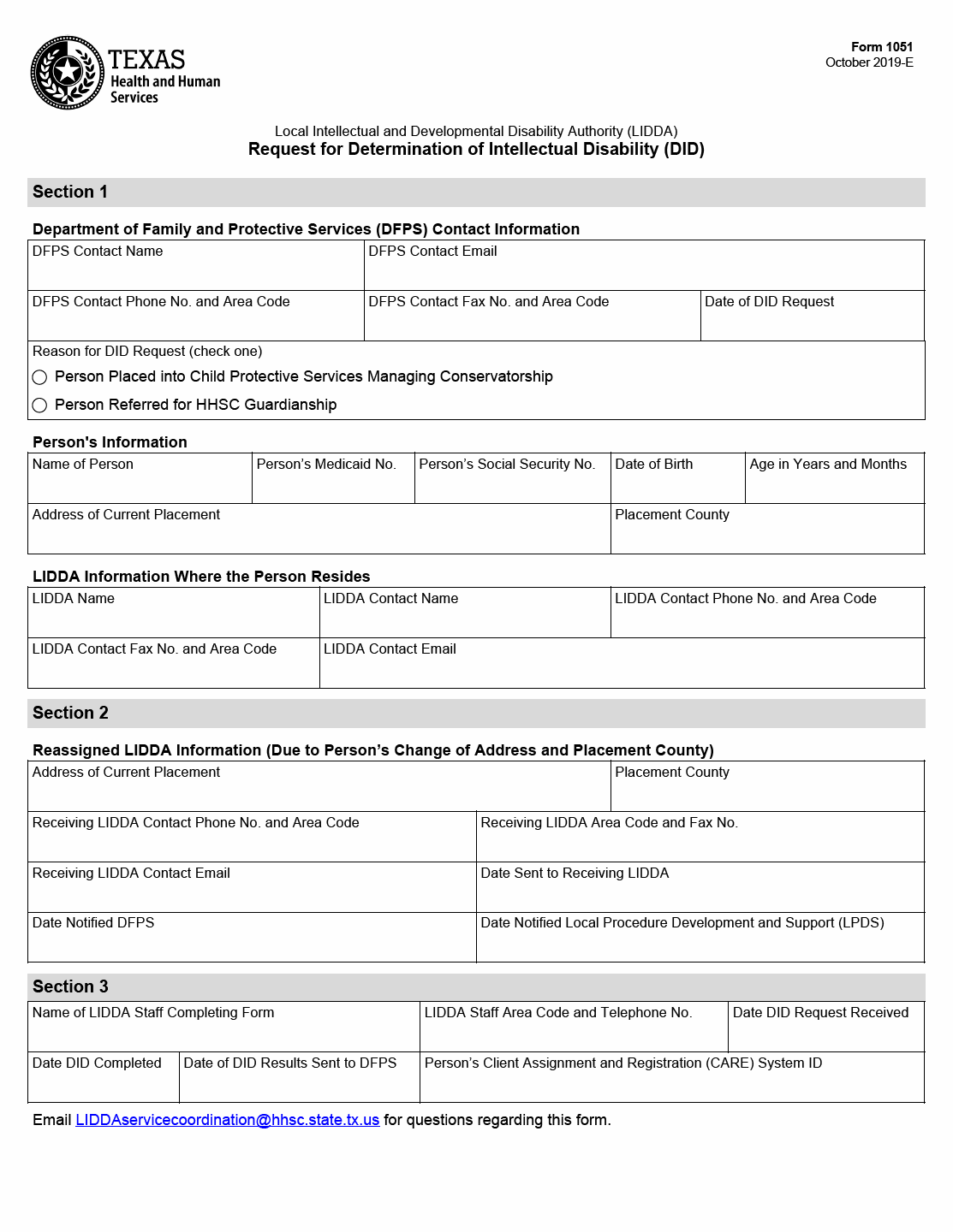 TX HHS Form 1051. Request for Determination of Intellectual Disability (DID)