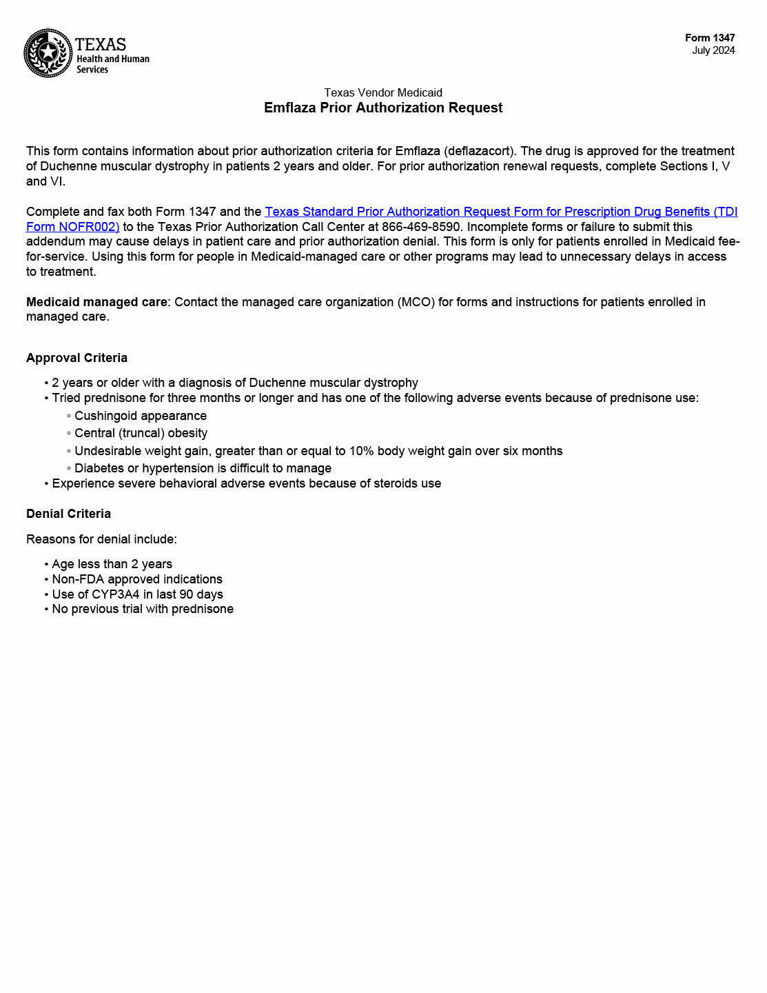TX HHS Form 1347. Emflaza Prior Authorization Request