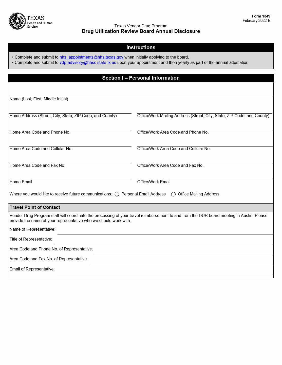 - This form is used by individuals appointed to the Texas Vendor Drug Program's Drug Utilization Review Board.