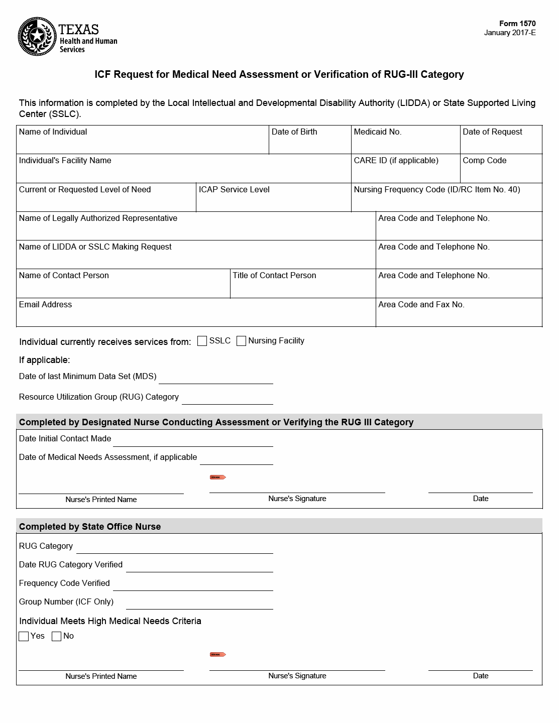 TX HHS Form 1570. ICF Request for Medical Need Assessment or Verification of RUG-III Category