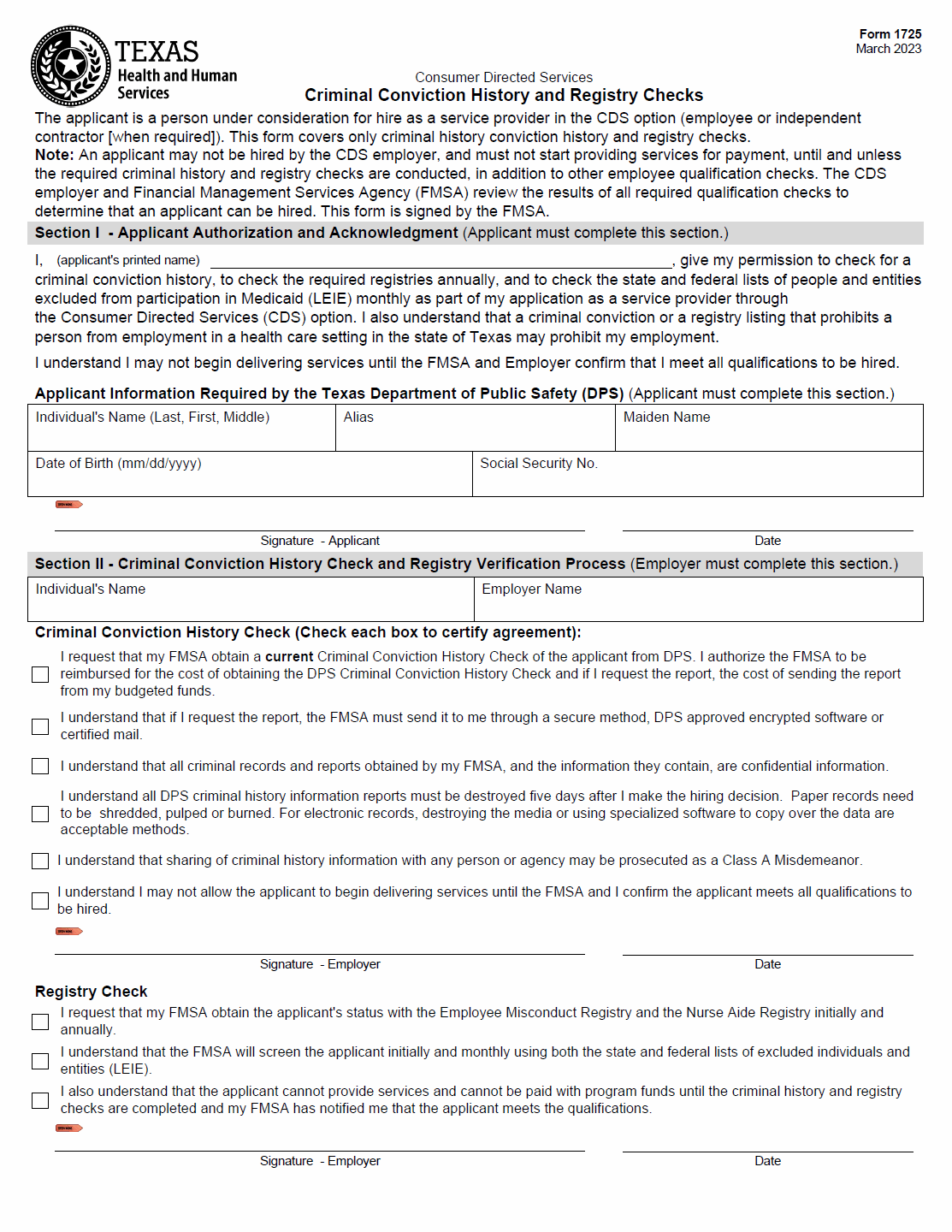 TX HHS Form 1725. Criminal Conviction History and Registry Checks