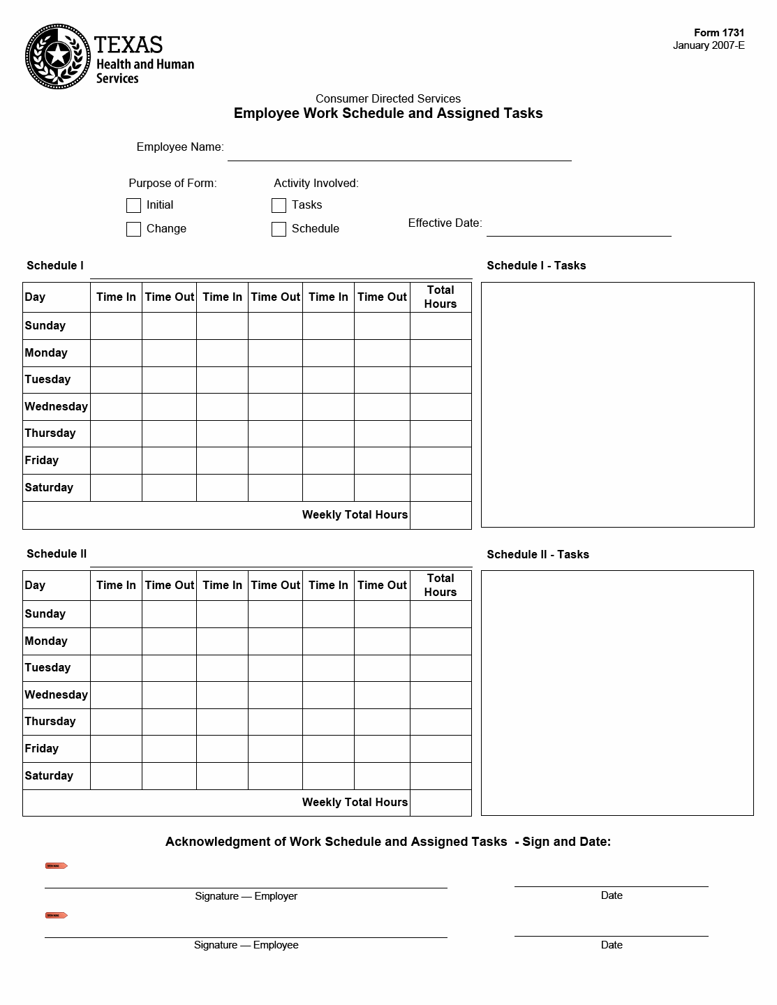 TX HHS Form 1731. Employee Work Schedule and Assigned Tasks