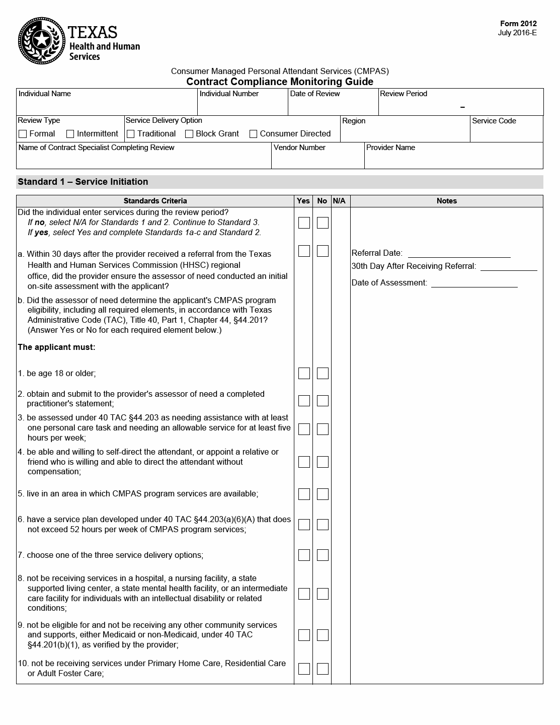 TX HHS Form 2012. CMPAS Contract Compliance Monitoring Guide