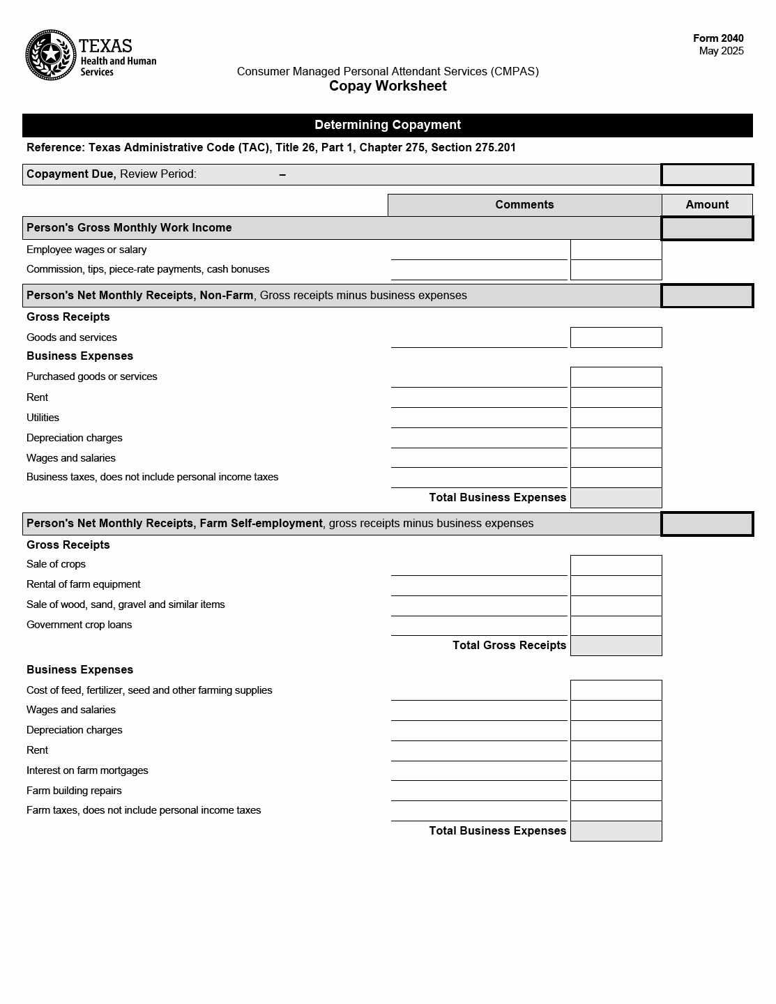 TX HHS Form 2040. CMPAS Copay Worksheet