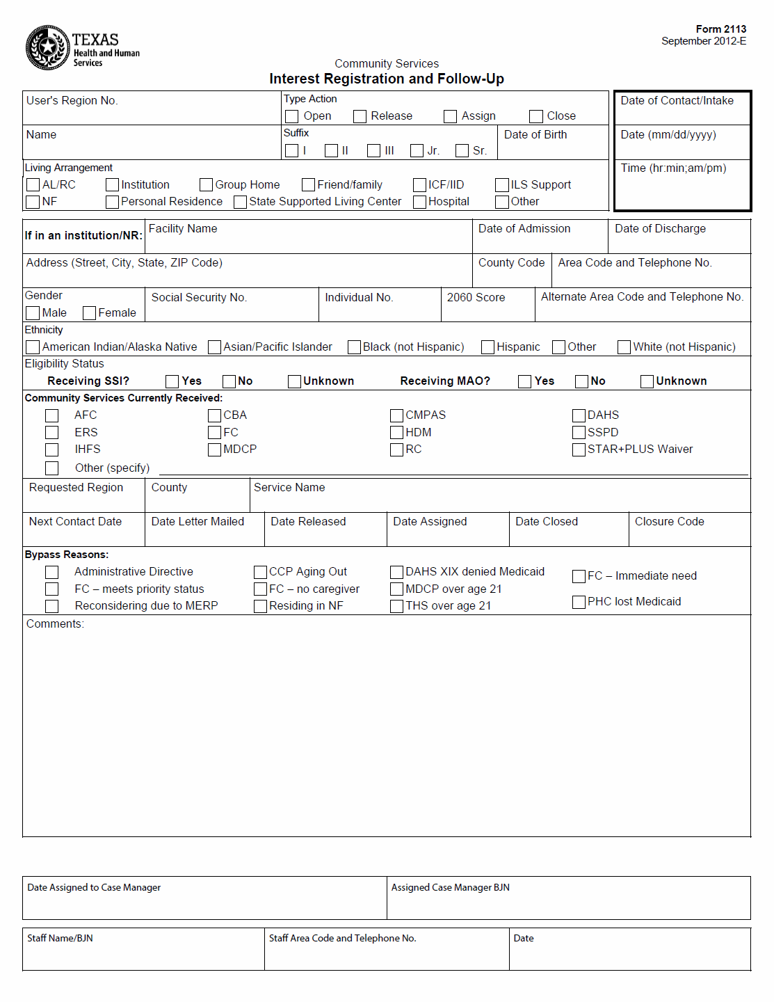 TX HHS Form 2113. Community Services Interest List Registration and Follow-Up