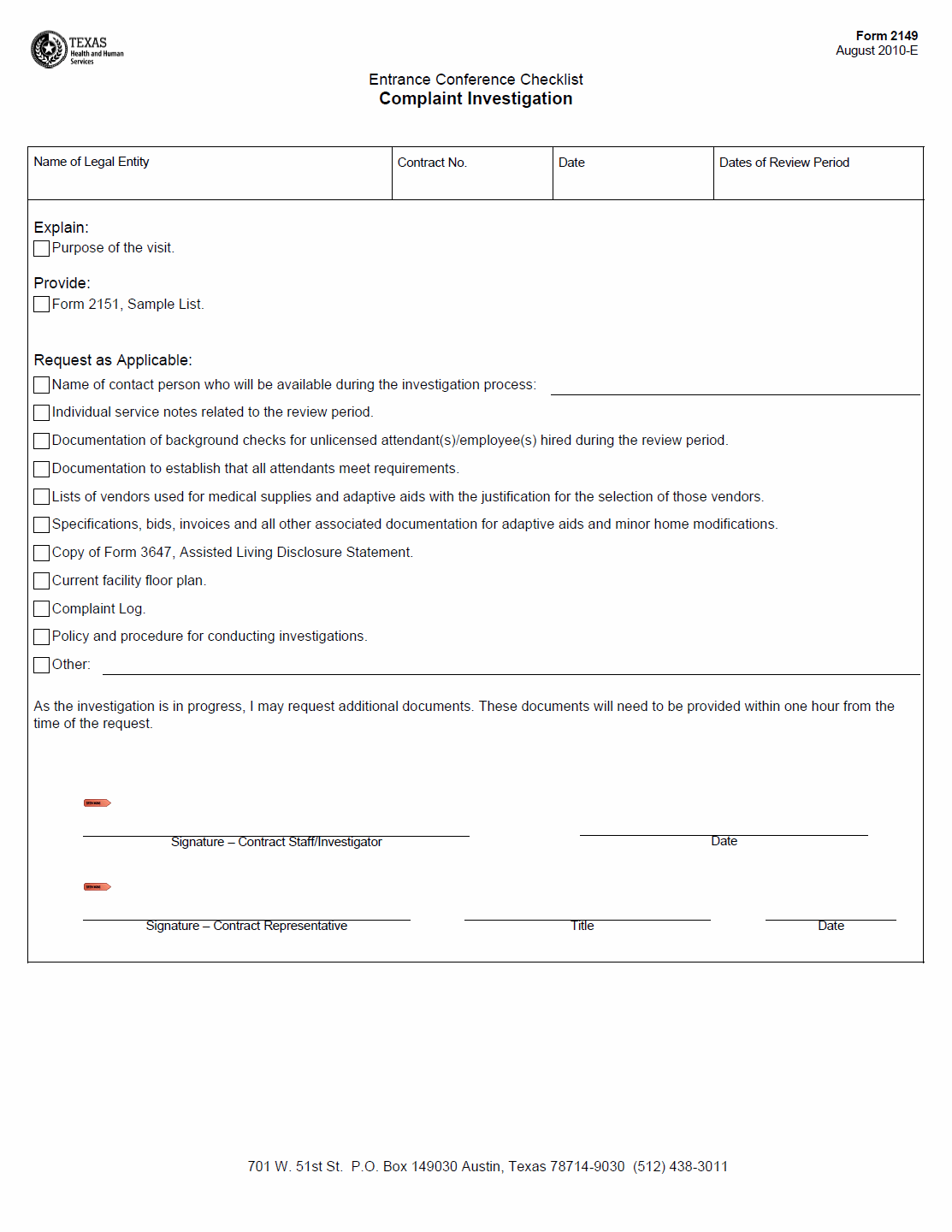 The TX HHS Form 2149, Requested Documents List, is a crucial tool for conducting investigations in various settings. This form helps investigators gather essential information to facilitate a thorough review of the situation.