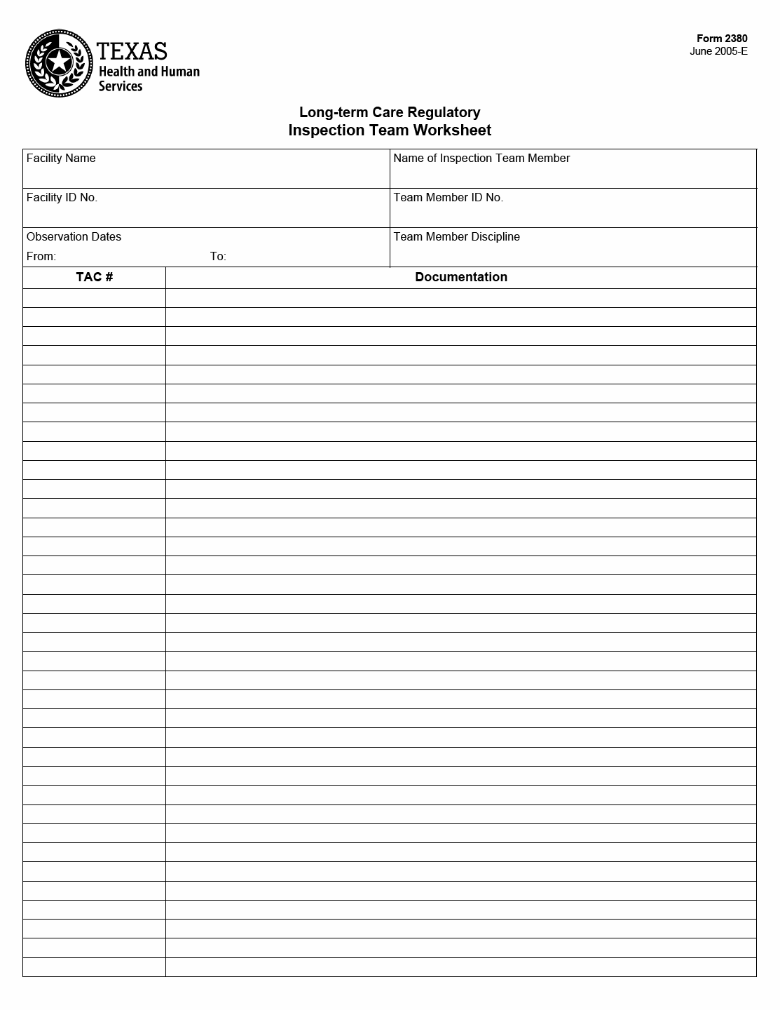 The TX HHS Form 2380, Inspection Team Worksheet, is a valuable tool for long-term care facilities to ensure compliance with regulatory requirements. This form helps inspection teams document their findings and observations during facility inspections, providing a comprehensive record of the facility's condition.