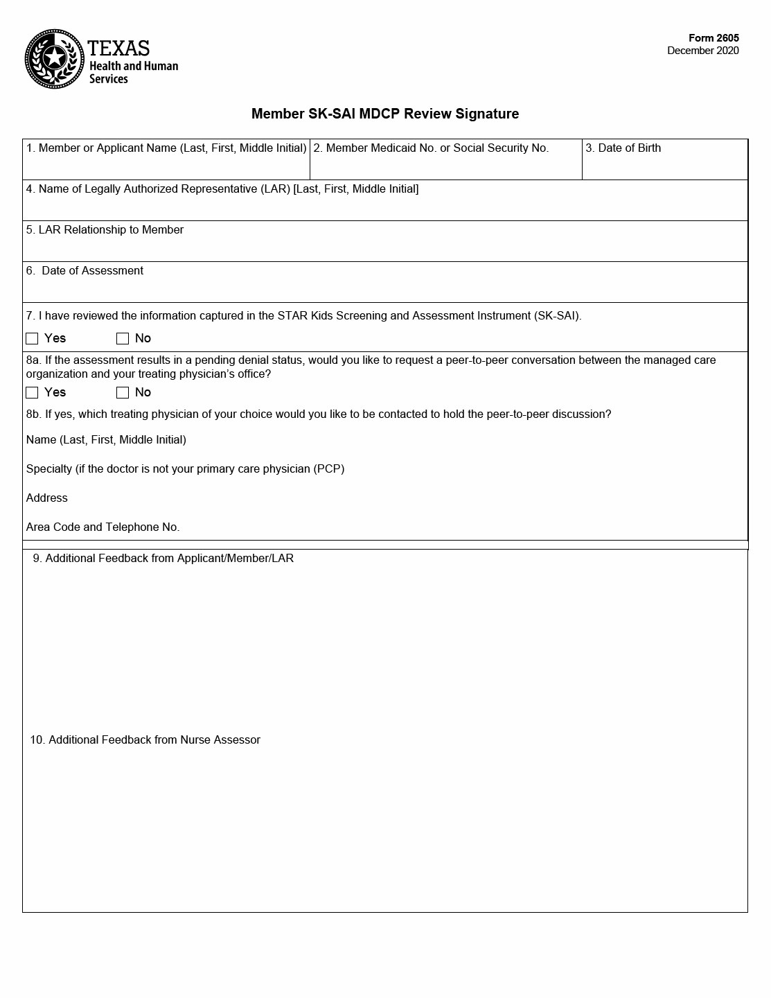 TX HHS Form 2605. Member SK-SAI MDCP Review Signature