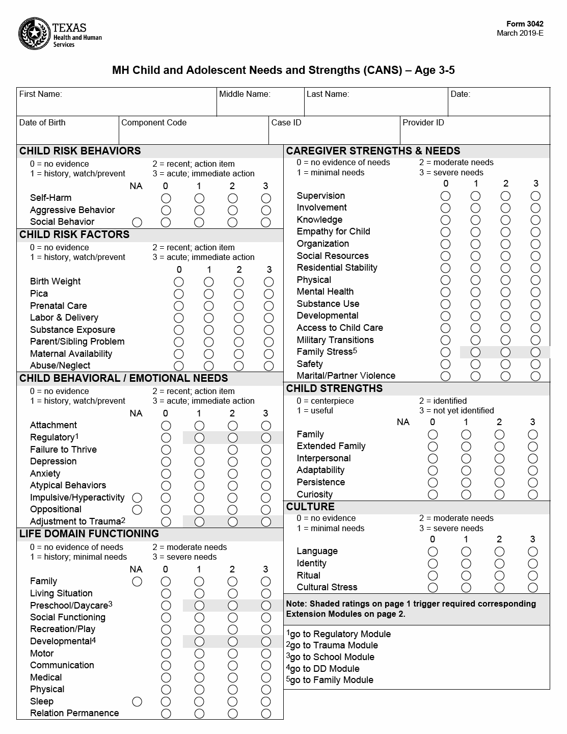TX HHS Form 3042. MH Child and Adolescent Needs and Strengths (CANS) Ages 3 through 5