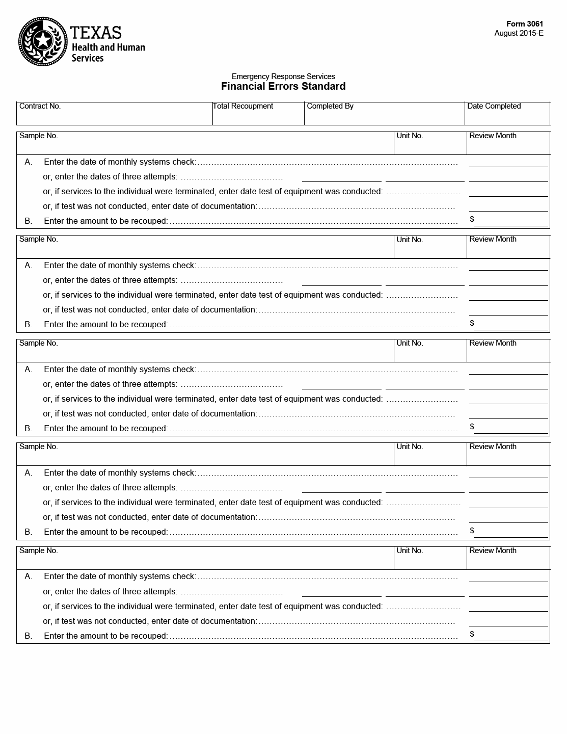 TX HHS Form 3061. Emergency Response Services Financial Errors Standard