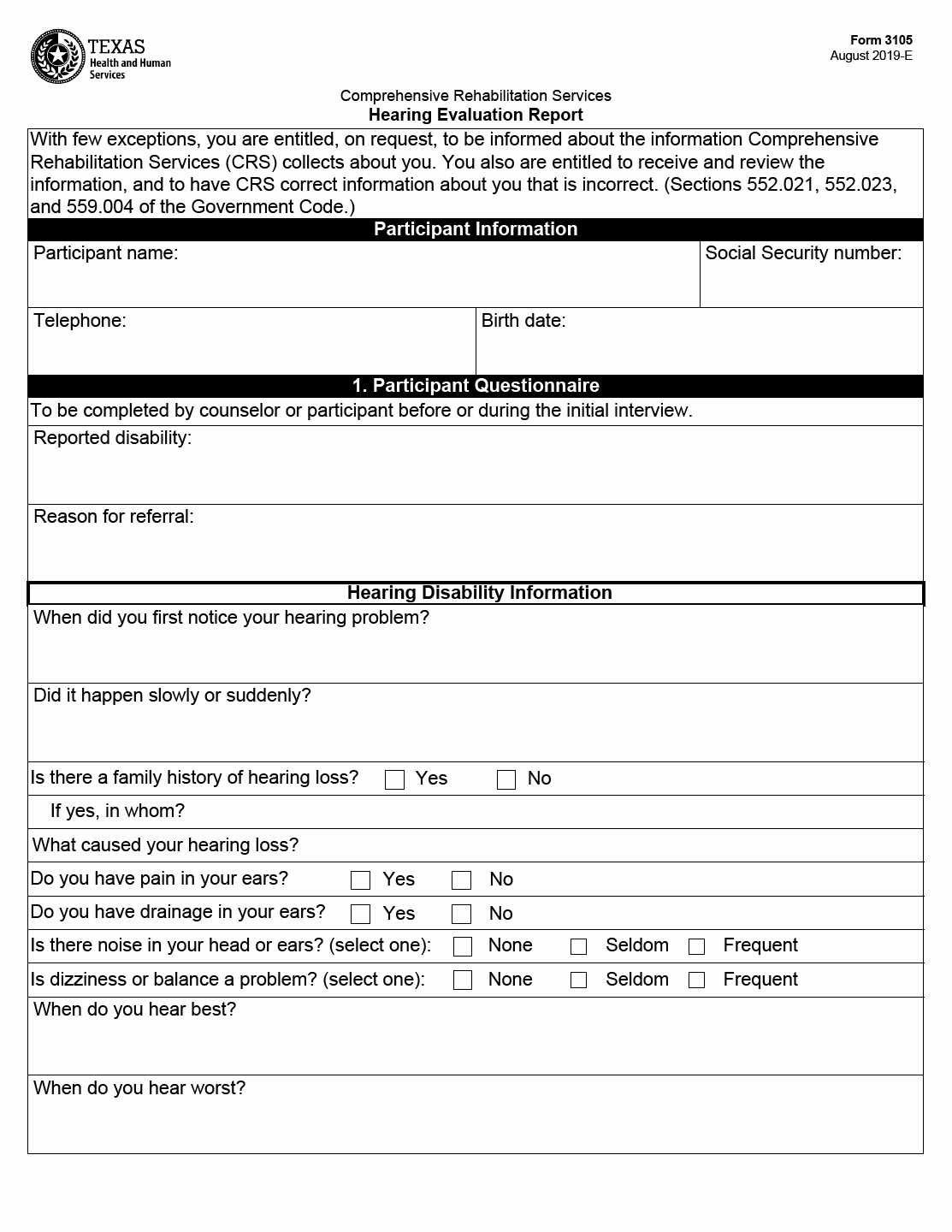 TX HHS Form 3105. Hearing Evaluation Report