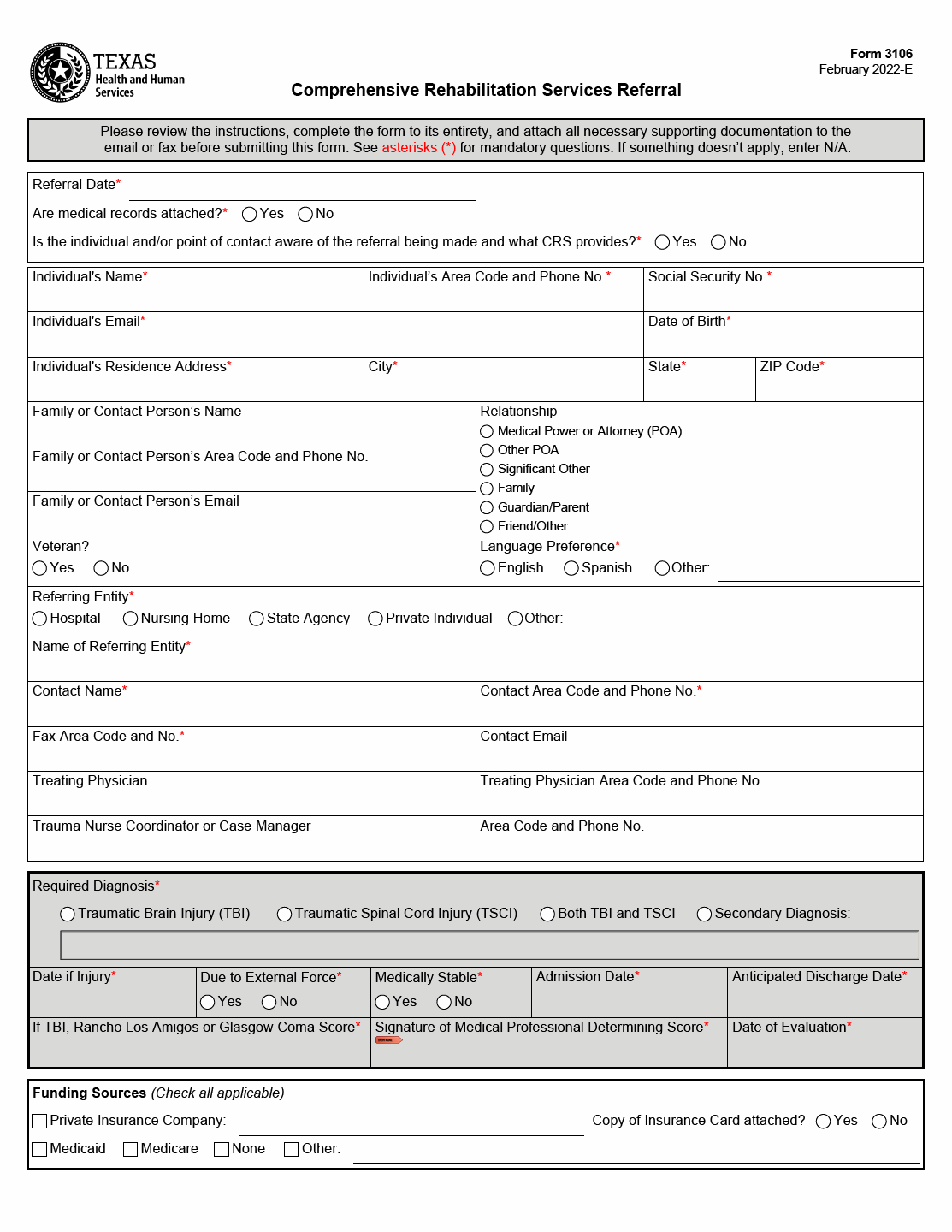TX HHS Form 3106. Comprehensive Rehabilitation Services Referral