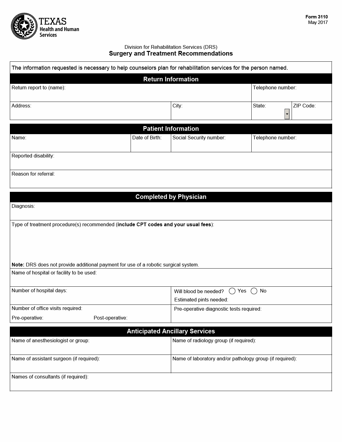 TX HHS Form 3110. Surgery and Treatment Recommendations