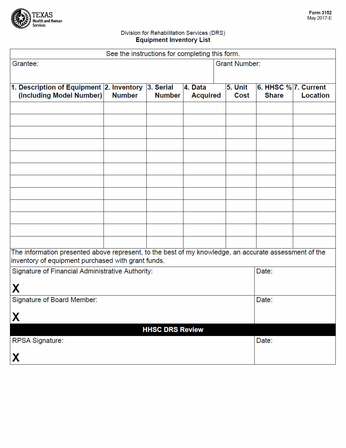 The TX HHS Form 3152, Equipment Inventory List, is a crucial tool for tracking and managing equipment purchased with grant funds. This form helps organizations accurately record and report their inventory of equipment, ensuring compliance with funding requirements.