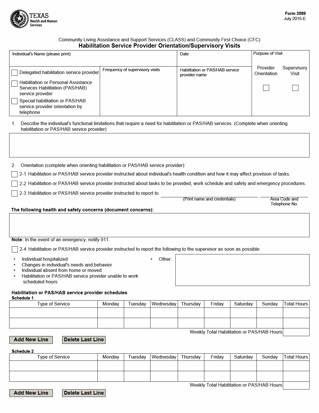 TX HHS Form 3599. Habilitation Service Provider Orientation/Supervisory Visits