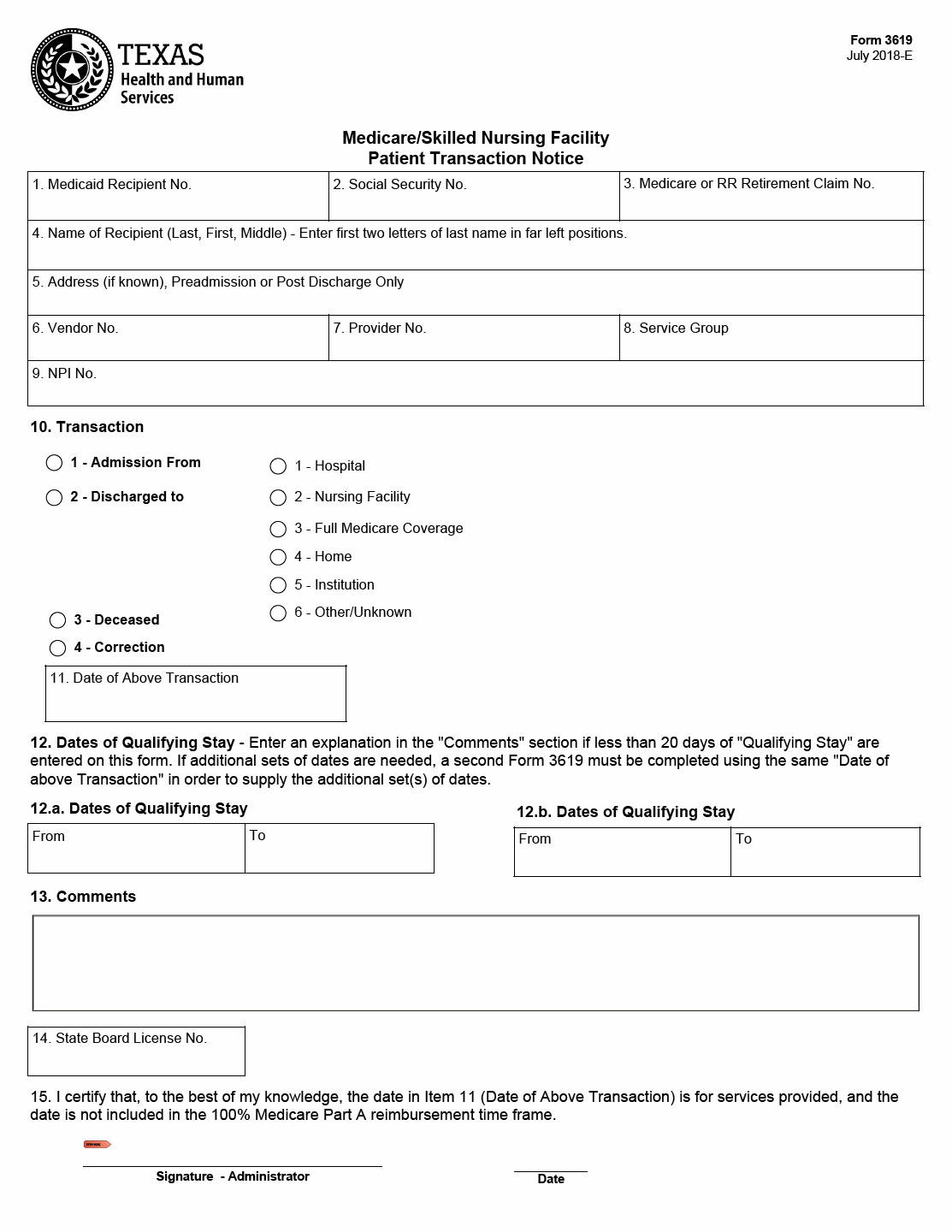 TX HHS Form 3619. Medicare/Skilled Nursing Facility Patient Transaction Notice