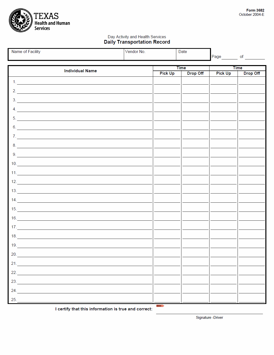 TX HHS Form 3682. Day Activity and Health Services Daily Transportation Record