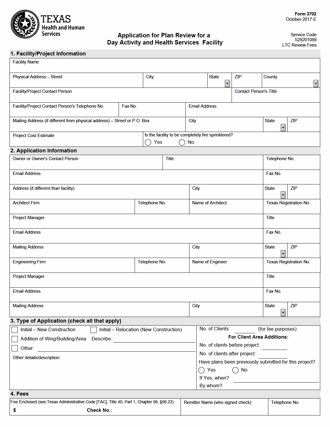 TX HHS Form 3702. Application for Plan Review for an Adult Day Care Facility