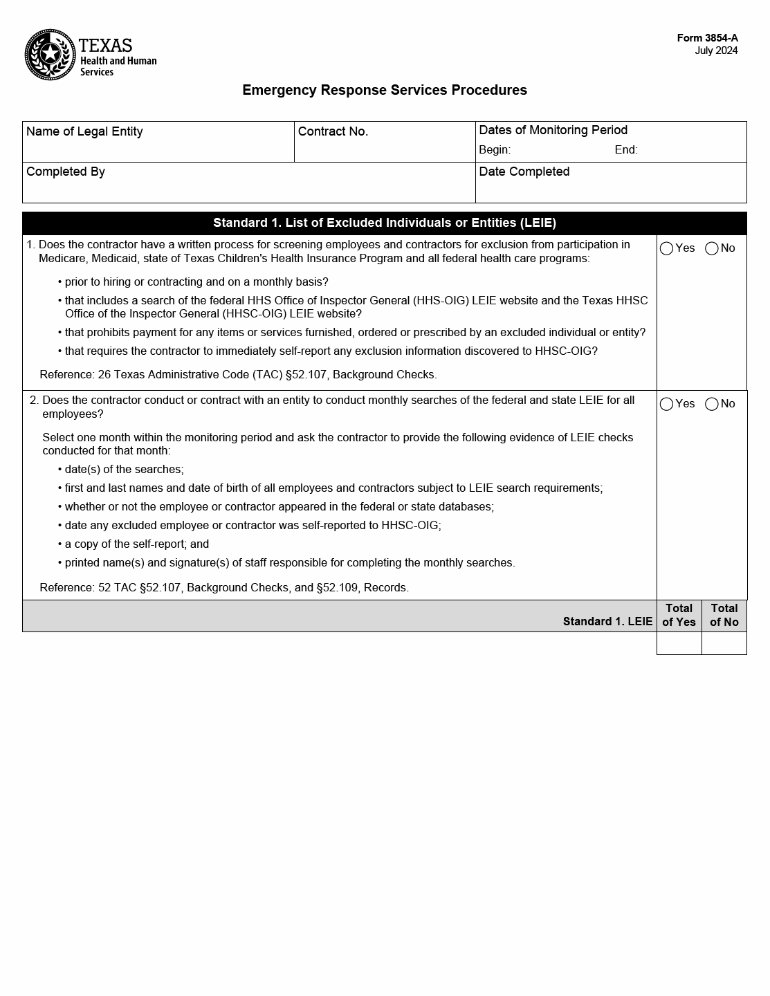 TX HHS Form 3854-A. Emergency Response Services Procedures