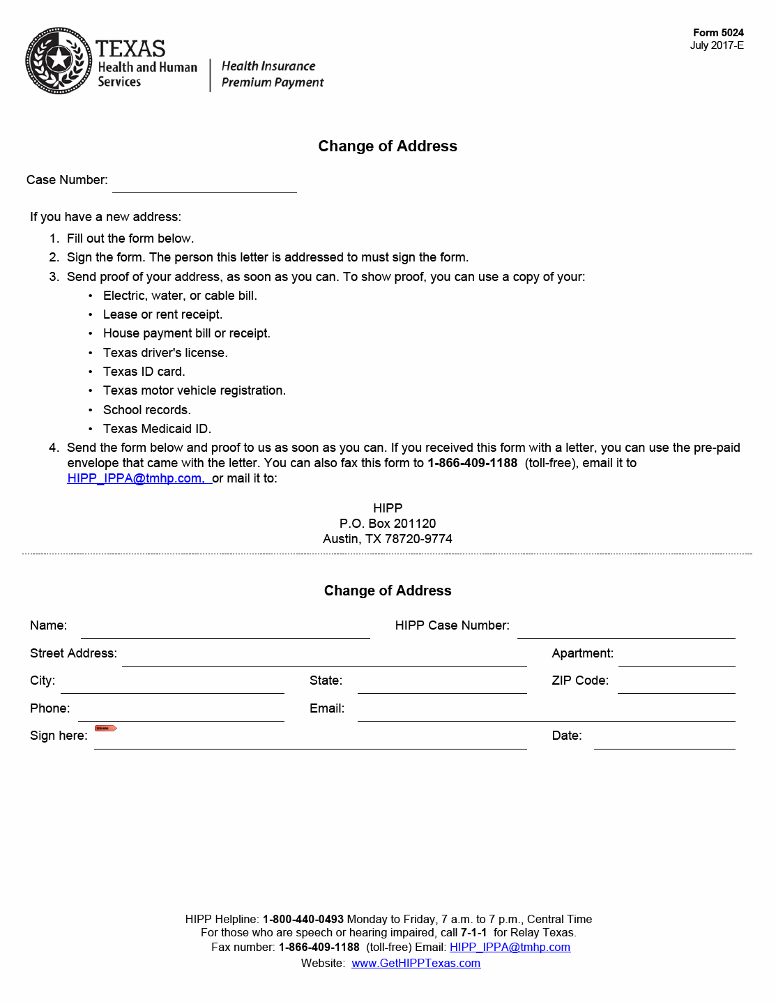 The TX HHS Form 5024, "HIPP Change of Address", is a crucial document for individuals who need to update their address information for the Health Insurance Premium Payment (HIPP) program. This form helps solve the problem of ensuring accurate contact information for participants in the HIPP program.