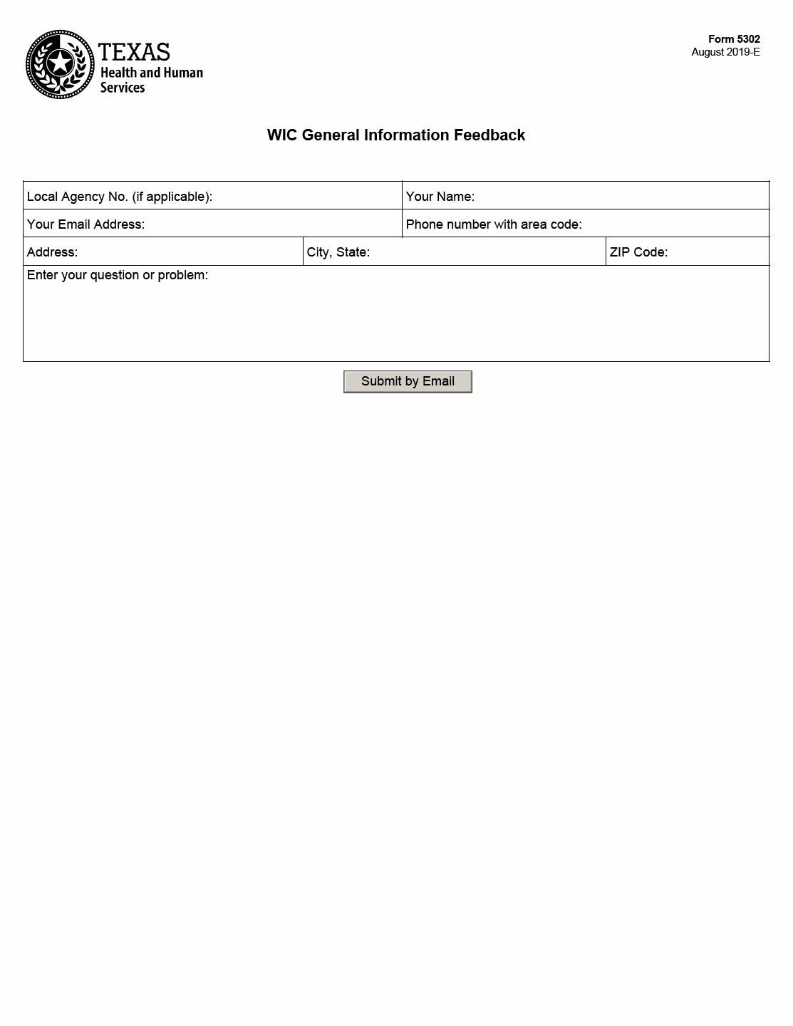 This feedback form is intended to facilitate open communication between WIC participants and program administrators. By submitting their concerns or questions, users can expect prompt attention and resolution of their issues. The TX HHS Form 5302, WIC General Information Feedback, is an essential tool for ensuring the WIC program remains responsive to the needs of its participants.