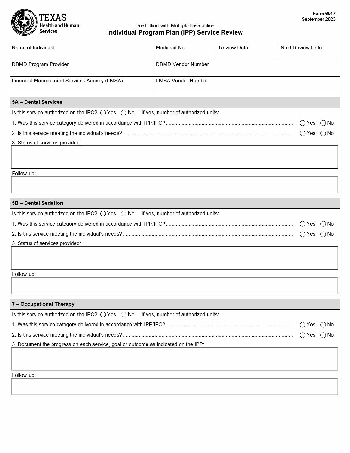 TX HHS Form 6517. Individual Program Plan (IPP) Service Review
