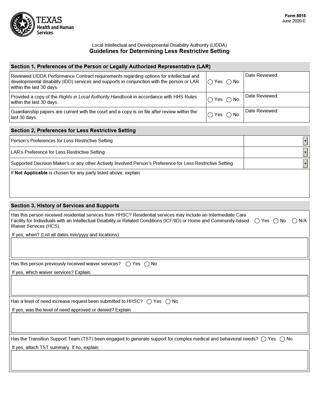 TX HHS Form 8515. Guidelines for Determining Less Restrictive Setting