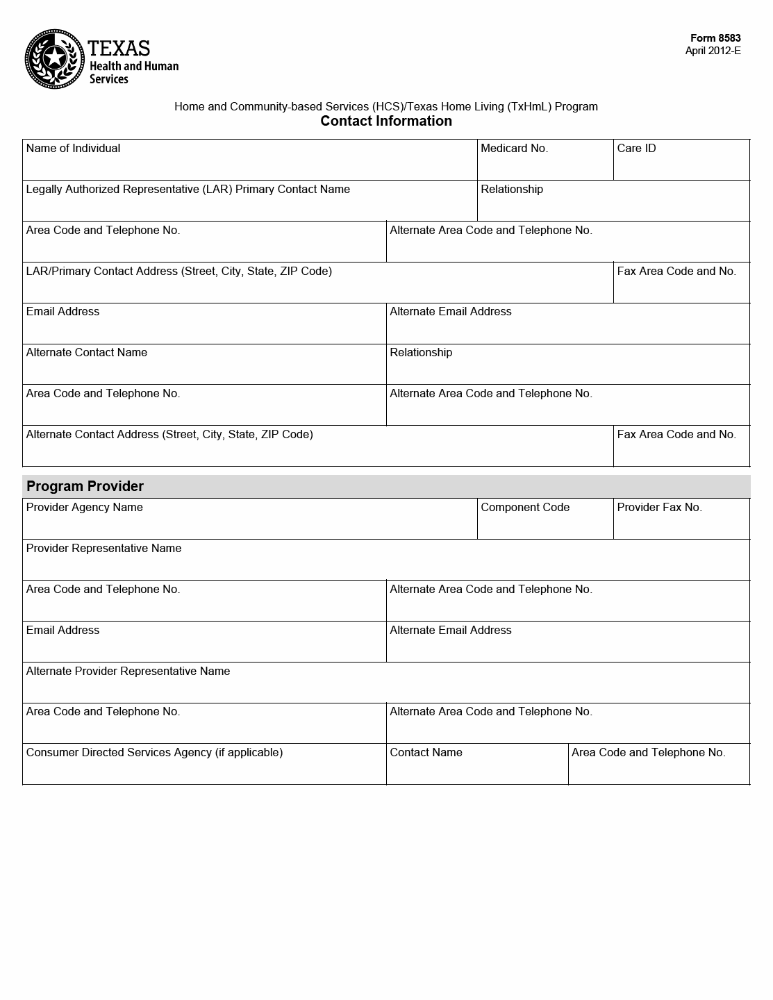 TX HHS Form 8583. HCS and TxHmL Program Contact Information