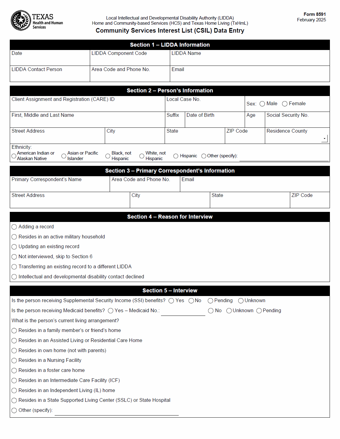 TX HHS Form 8591. Community Services Interest List (CSIL) Data Entry