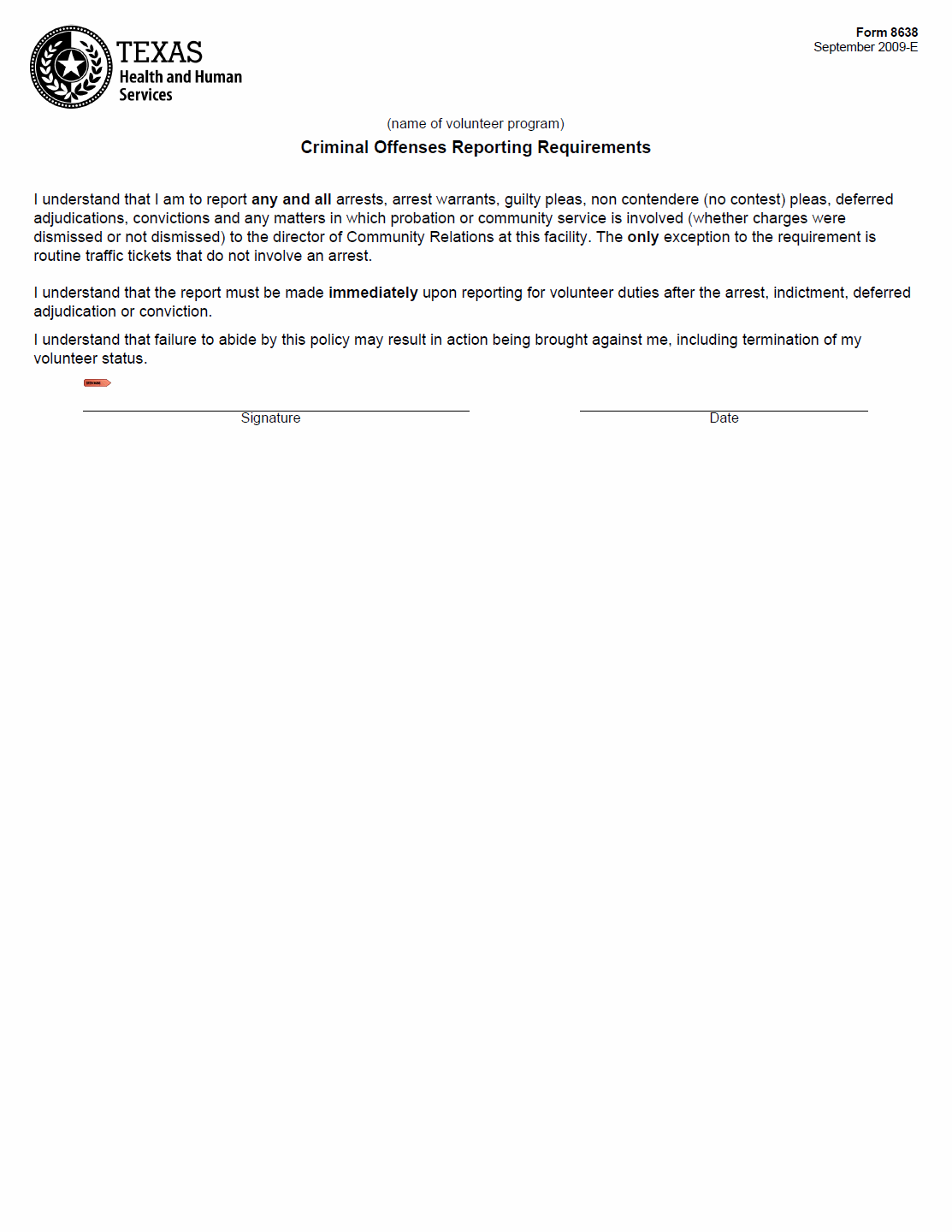 TX HHS Form 8638. Criminal Offenses Reporting Requirements