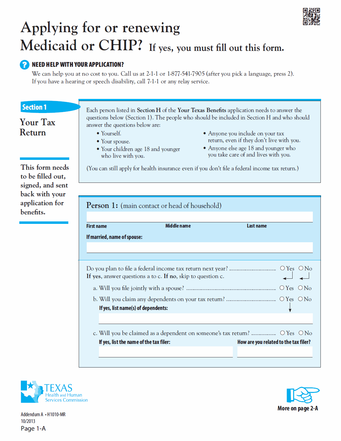 Applicants typically fill out this form if they are applying for or renewing Medicaid or CHIP benefits. The Texas Health and Human Services Commission (HHS) issues this form, which is an addendum to the main H1010-MR form. Key points to note include: