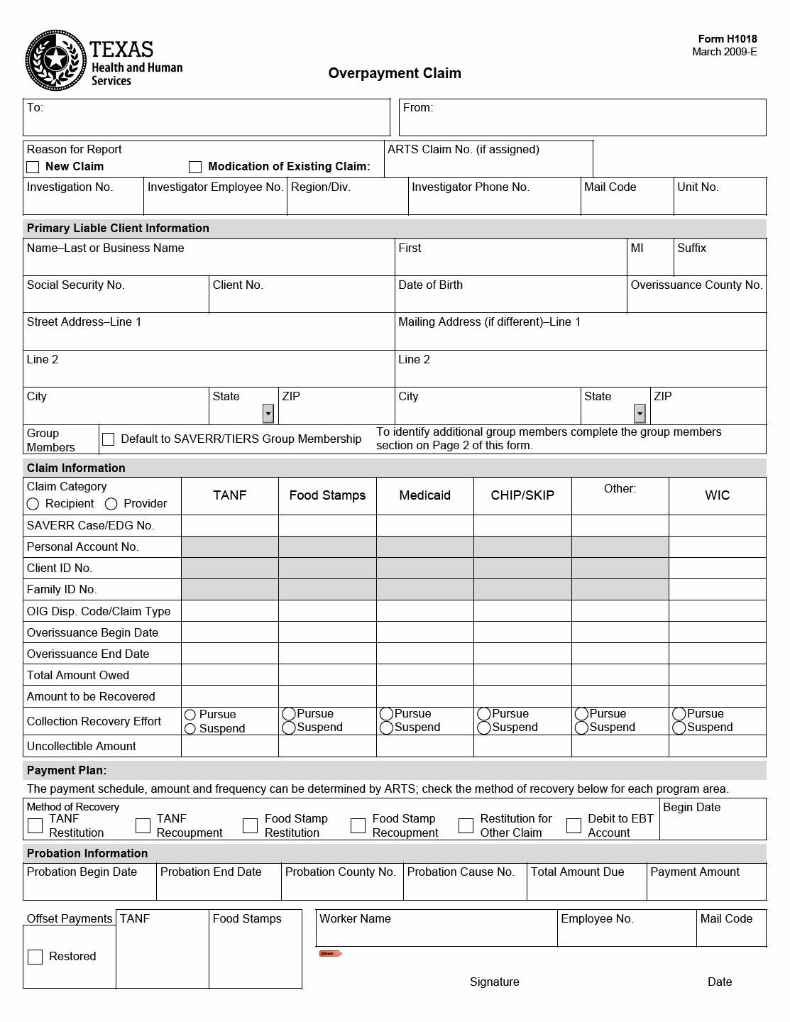 The TX HHS Form H1018, Overpayment Claim, is a crucial document for identifying and resolving overpayments in various government programs. This form helps to streamline the process of claiming and recovering overpaid funds, ensuring that resources are allocated efficiently and effectively.