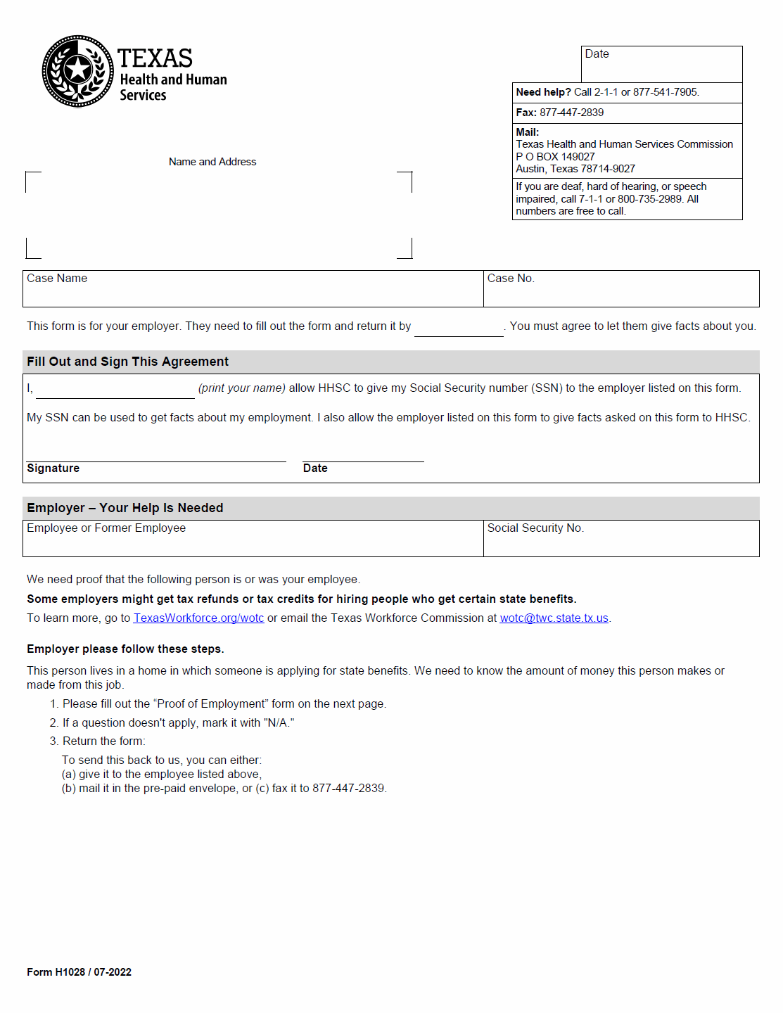 The Employment Verification Form H1028 is a crucial document for employers to prove the employment status of their employees or former employees. This form helps solve the problem of verifying employment information, which is essential in certain situations such as applying for state benefits or tax refunds.