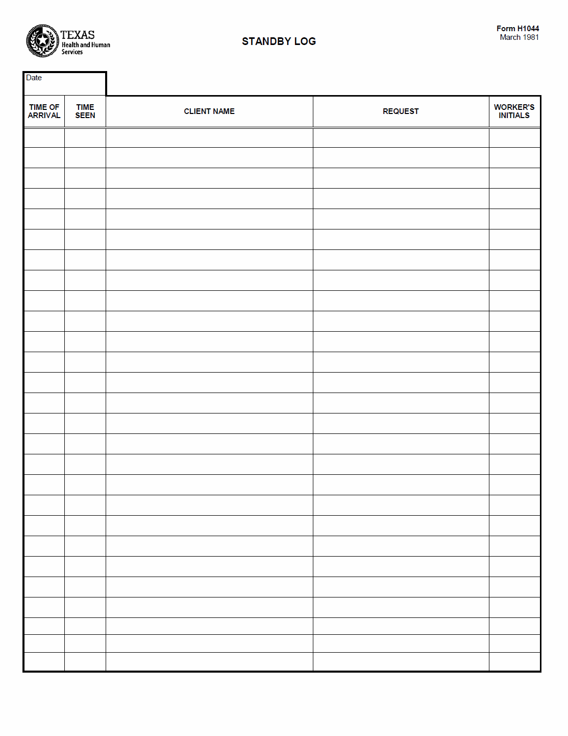 The TX HHS Form H1044, Standby Log, is a practical tool designed to record essential information related to standby situations. This form helps ensure that critical details are captured, facilitating effective communication and decision-making in emergency scenarios. Typically used by workers who need to document their arrival times and other relevant information during standby periods, this form provides a standardized framework for recording vital data.