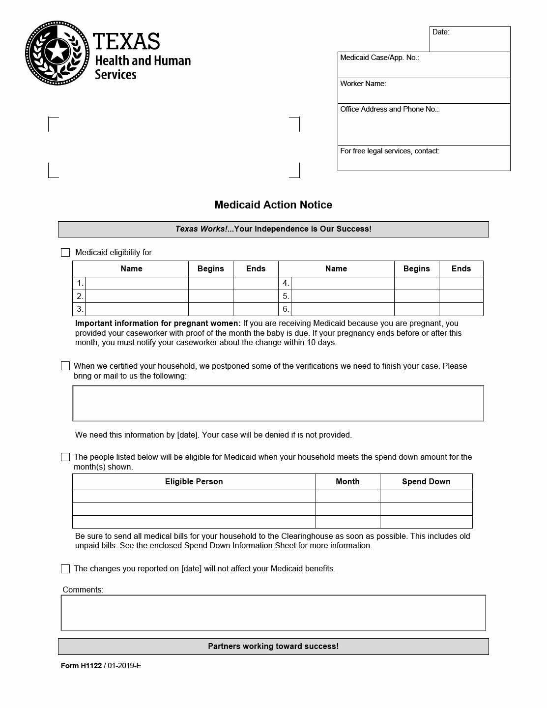 The TX HHS Form H1122, Medicaid Action Notice, is a crucial document that helps solve the problem of ensuring accurate and timely information for Medicaid eligibility. This form is typically filled out by individuals who are receiving Medicaid benefits, particularly pregnant women, to report changes in their household or medical expenses.