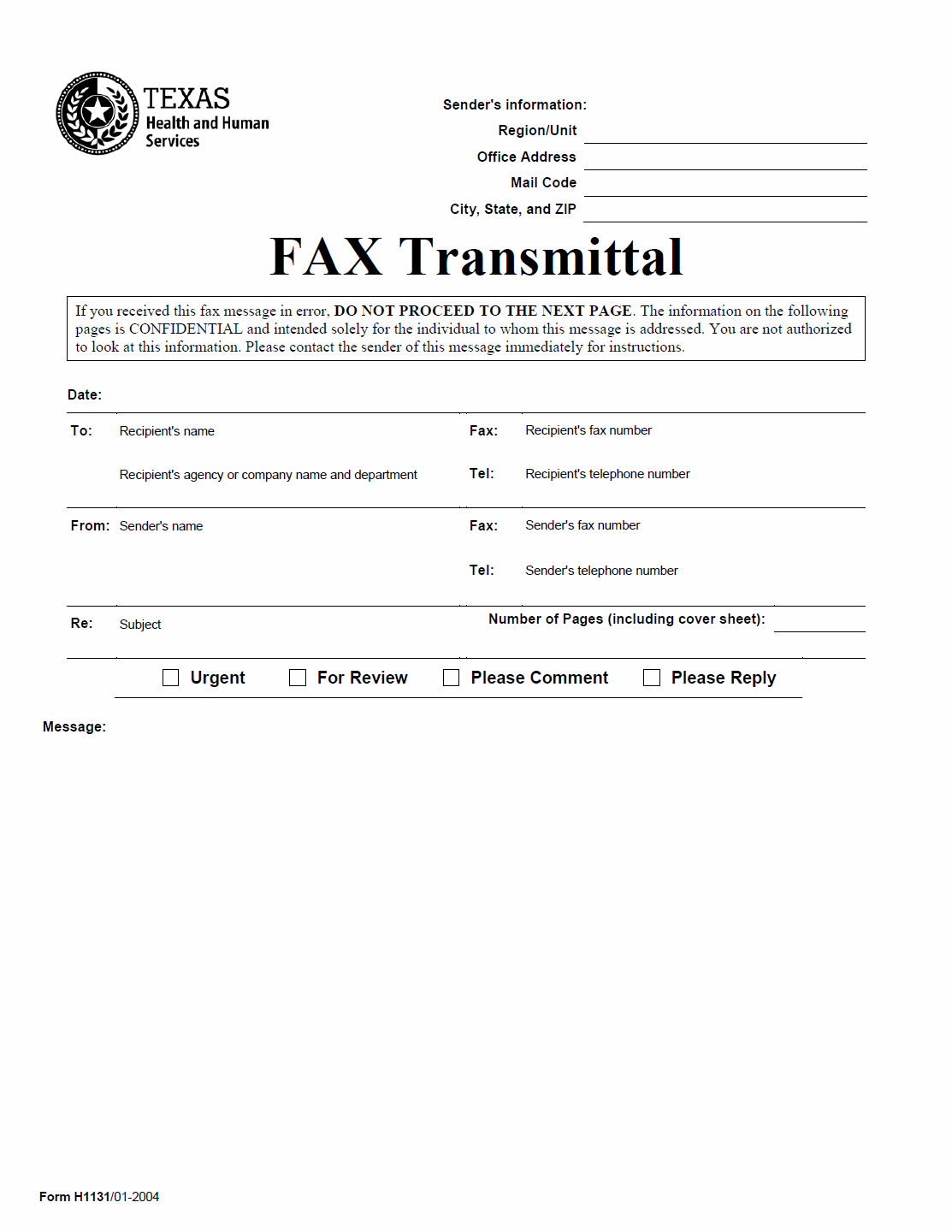 TX HHS Form H1131. Individually Identifiable Health Information Fax Transmittal