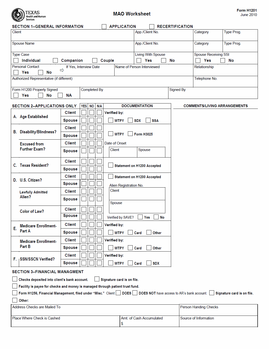 The TX HHS Form H1201 MAO Worksheet is a practical tool designed to help individuals manage their living arrangements and financial management. This form is typically used in situations where an individual requires assistance with daily living activities or has a disability that affects their ability to manage their finances.