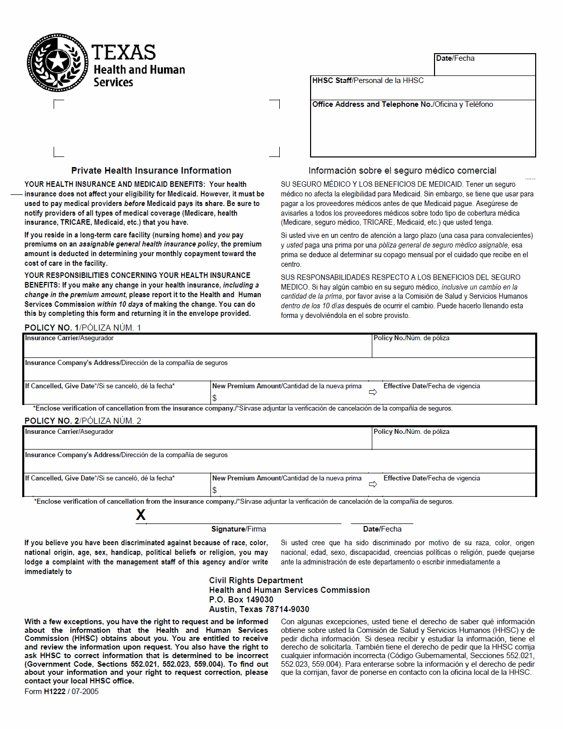 - Changes to private health insurance policies must be reported to the Health and Human Services Commission within 10 days.