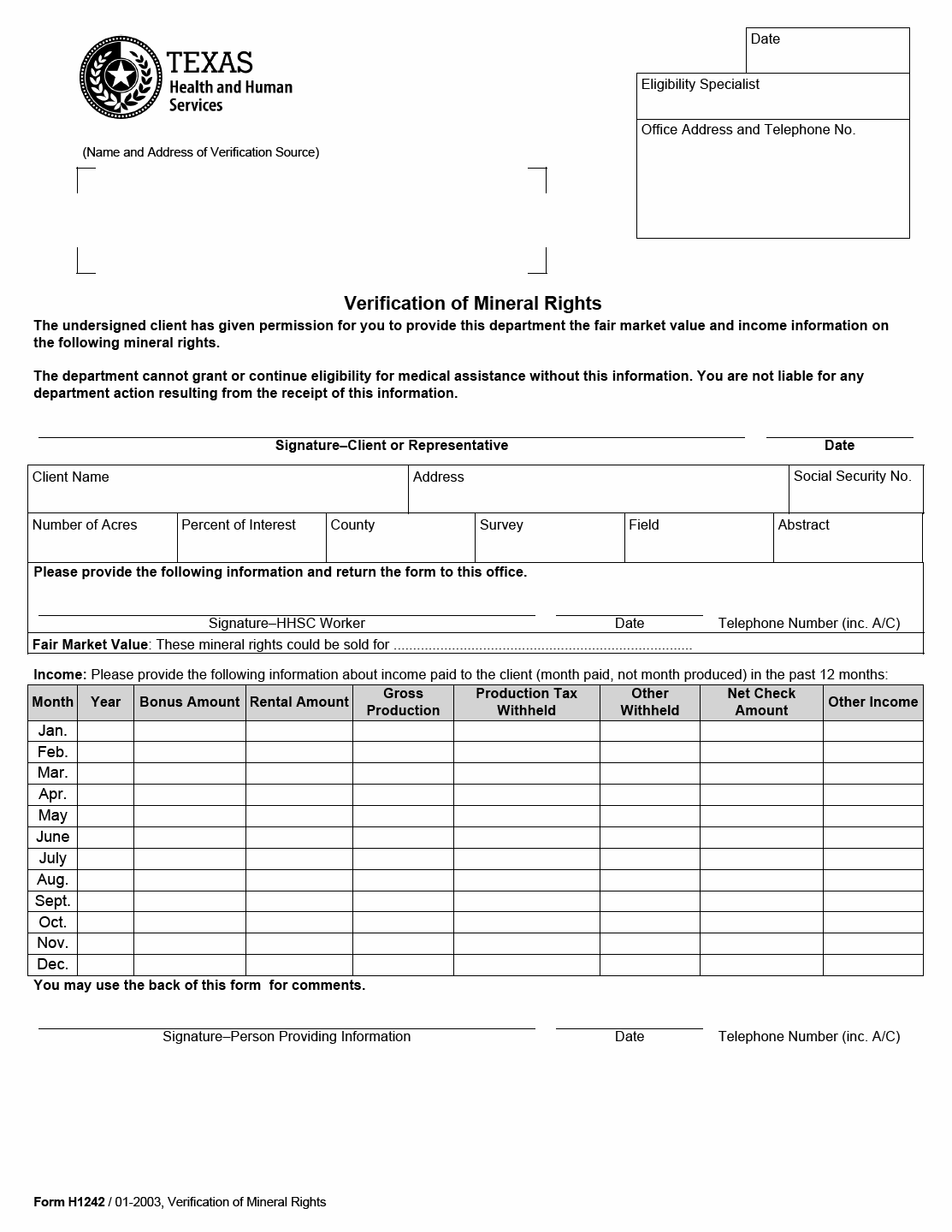 - The form is used to verify mineral rights income information for medical assistance eligibility.