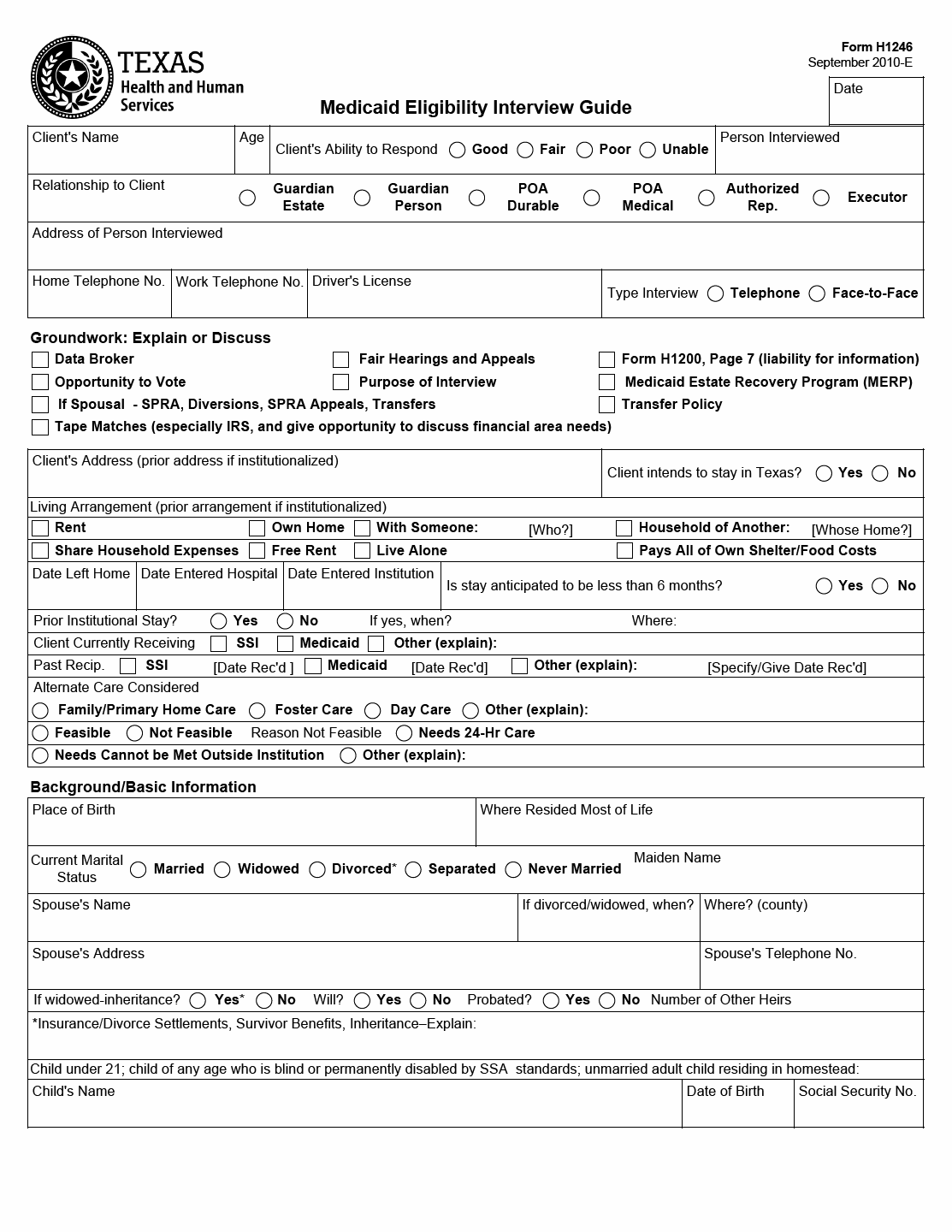 TX HHS Form H1246. Medicaid Eligibility Interview Guide
