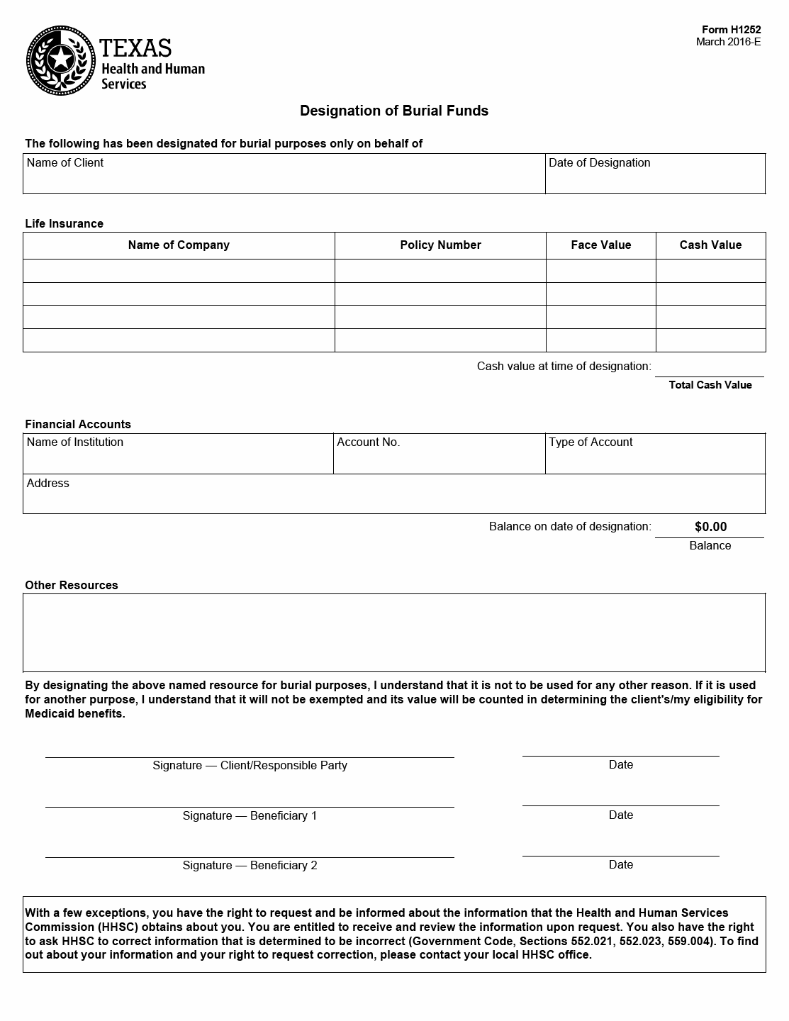 - This form is used for individuals who want to designate their burial funds for funeral expenses.