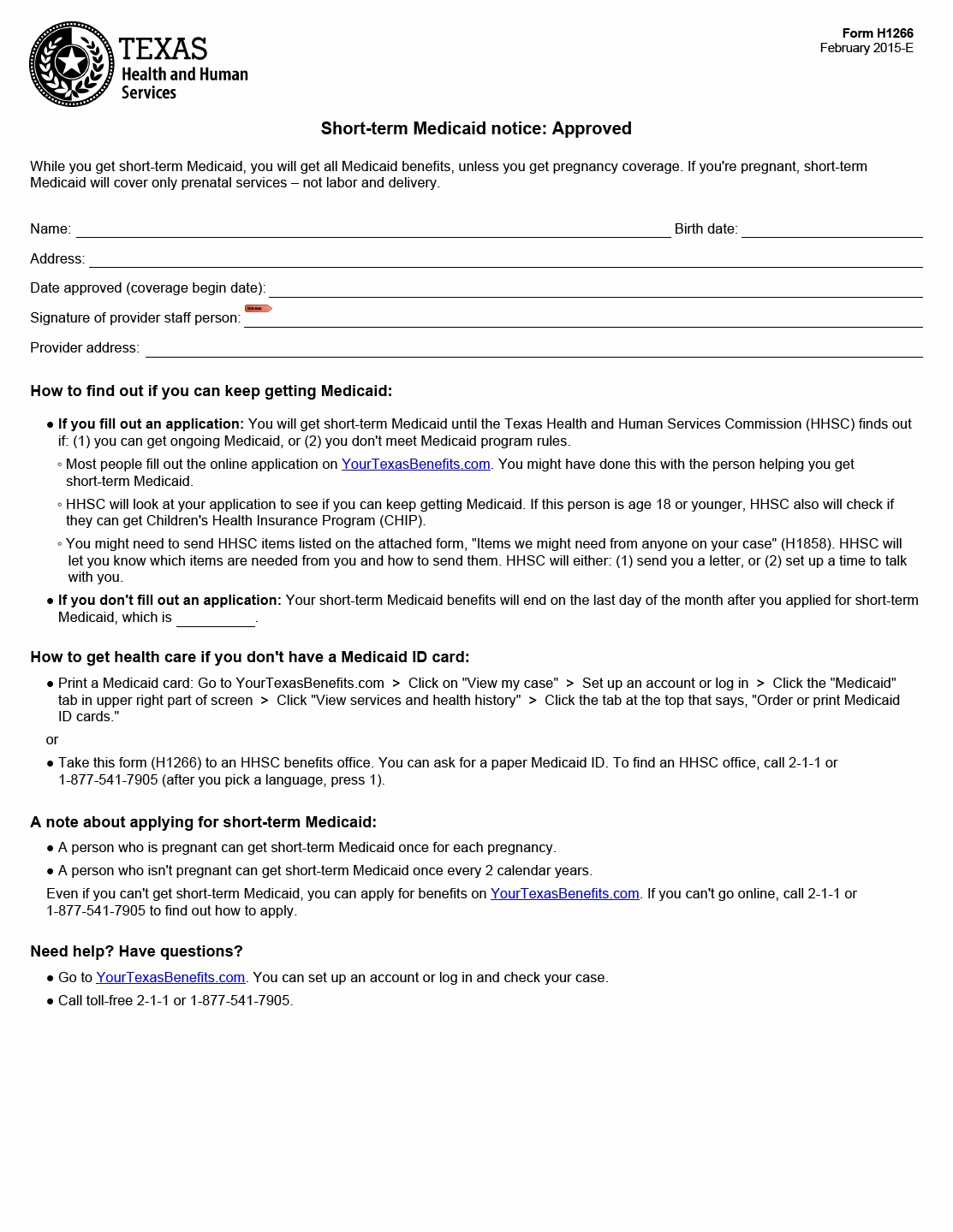 TX HHS Form H1266. Short-term Medicaid Notice Approved